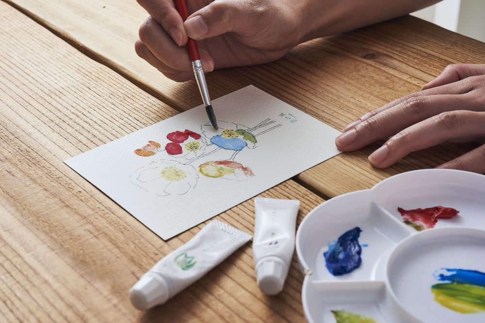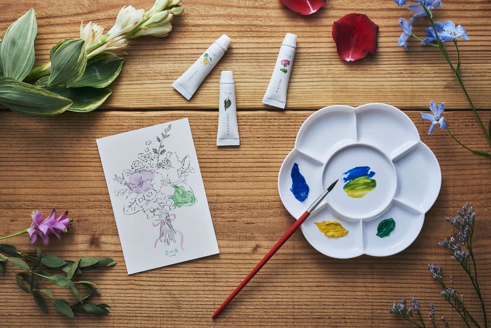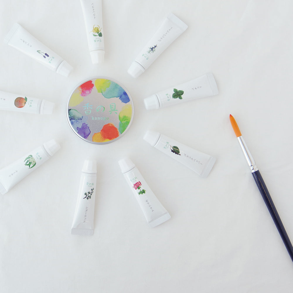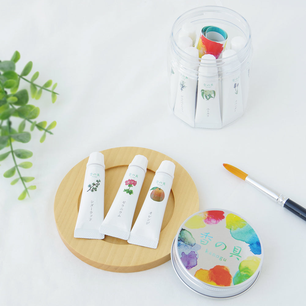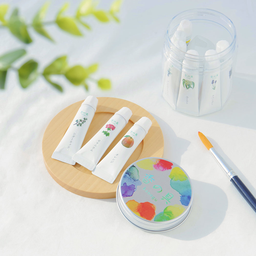 香の具とは、植物由来の精油と水彩絵の具を混ぜ合わせた、香りのある新しい絵の具ブランドです。