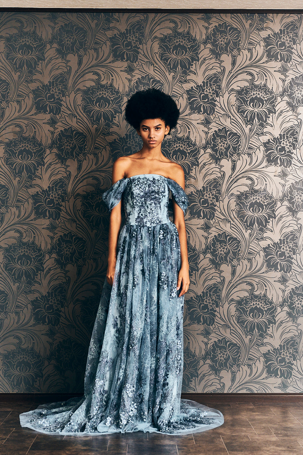 ナチュラルで自然なパターンと、すっきりとした アクセサリーの、 幾何学的な曲線パターンが 調和を成す刺繡デザインのドレスです。 ワス レナグサをモチーフにした小さな3Dフラワーが 愛らしくも立体感を示し、女性らしさを強調してくれます。 マイルドかつナチュラルなカラーで 快適さを感じられ、 ポイントとなるクリスタルストーンが豪華に輝く高級感溢れるドレスに。
