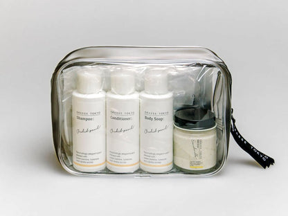 人気のトラベルセット(シャンプー/コンディショナー/ボディソープ)に ボディスクラブ、エプソムソルト、ハンド&ボディクリームがセットになった、 旅に持っていきたくなる丁度良いサイズのスペシャルなポーチ。 使用後も商品を入れ替えてご利用いただけます。