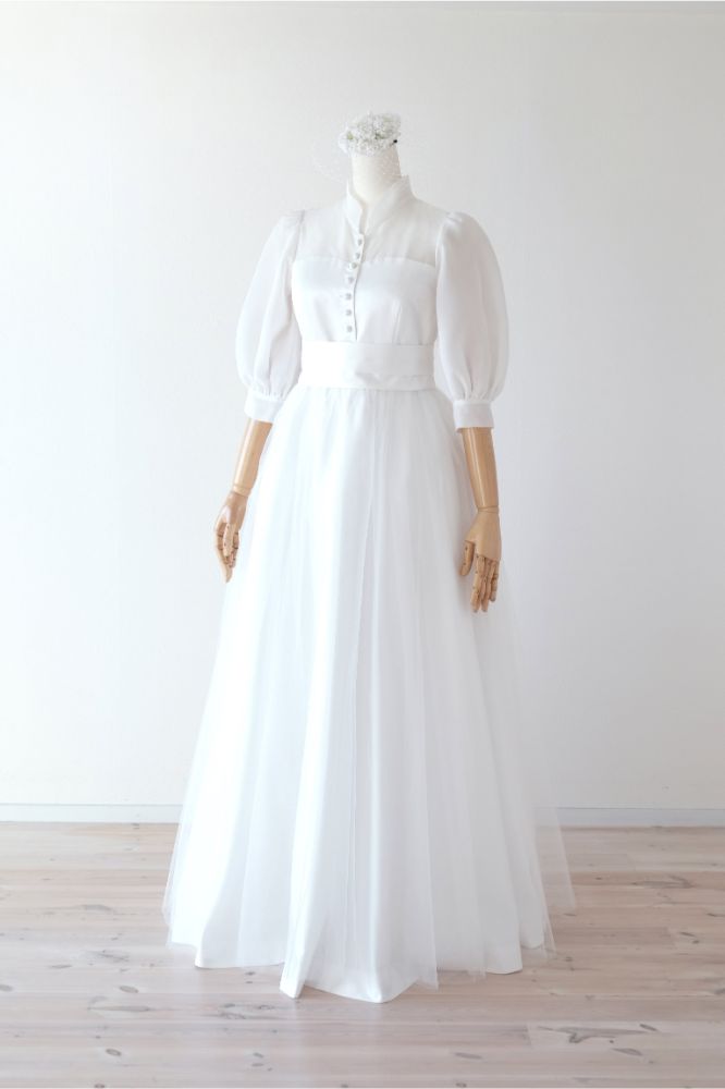 オードリー・ヘップバーンをイメージした清楚なイメージのAラインドレス