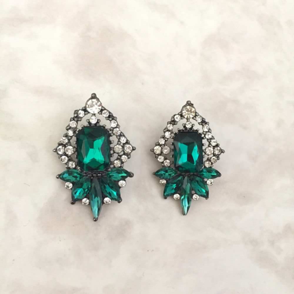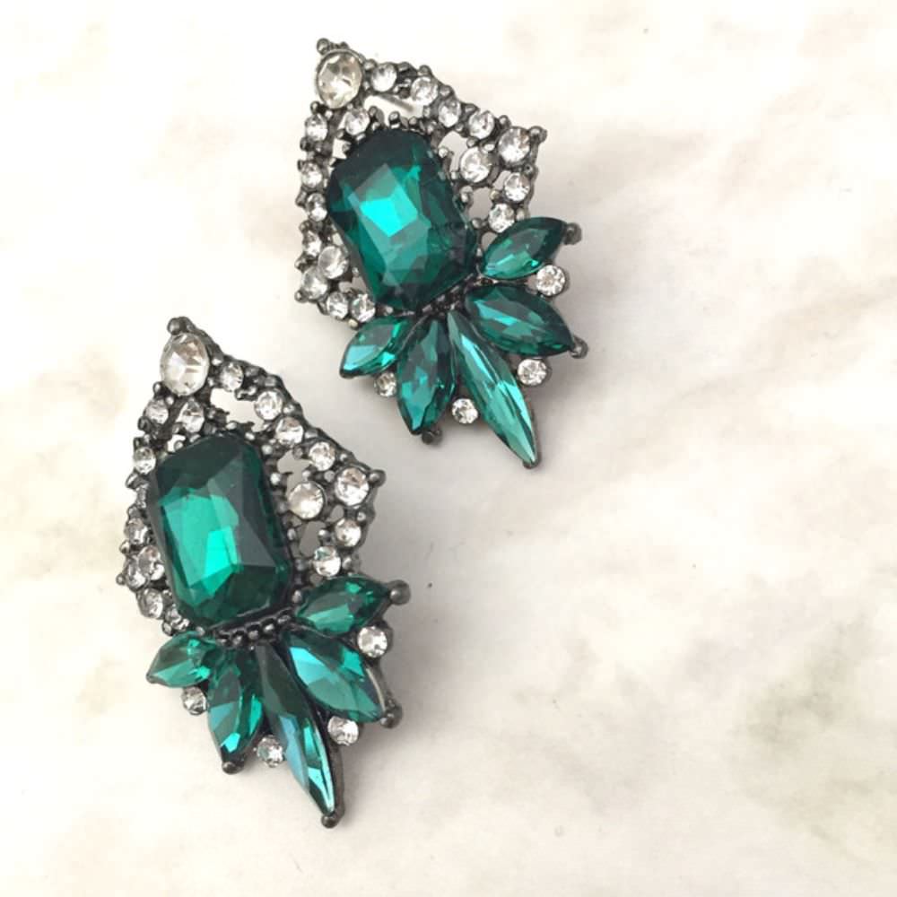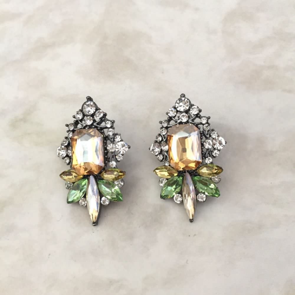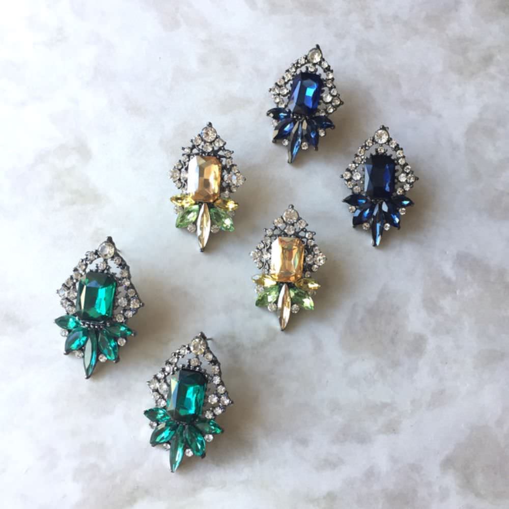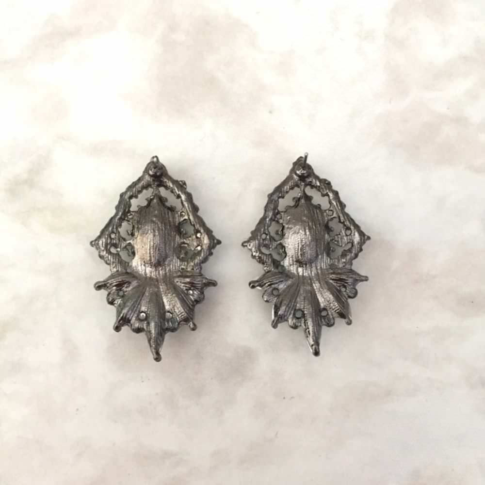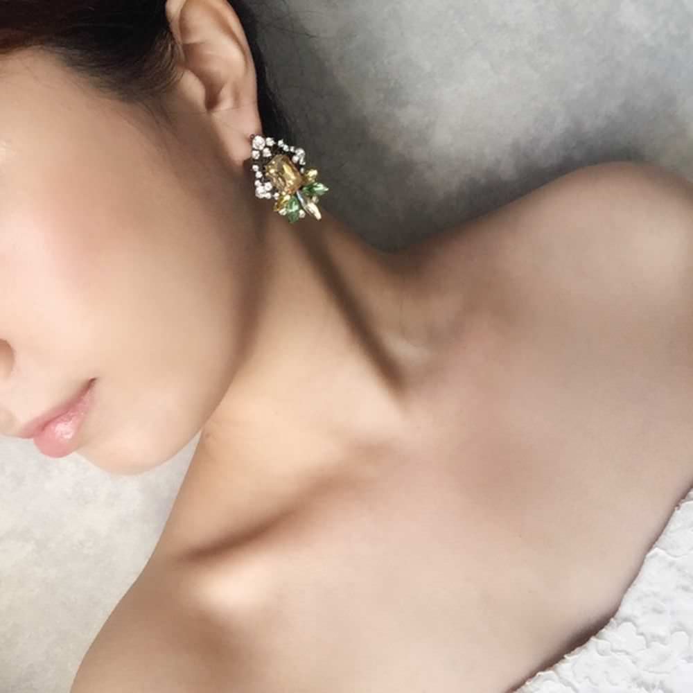 大きいビジューの周りにはまばゆいほどのラインストーンが散りばめられています。