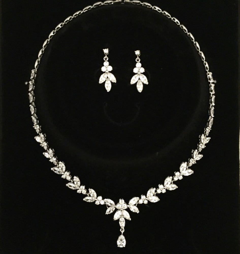 chic silver ビジューネックレス&ピアスセット/ブライダルアクセサリー 【結婚式 アクセサリーセット】