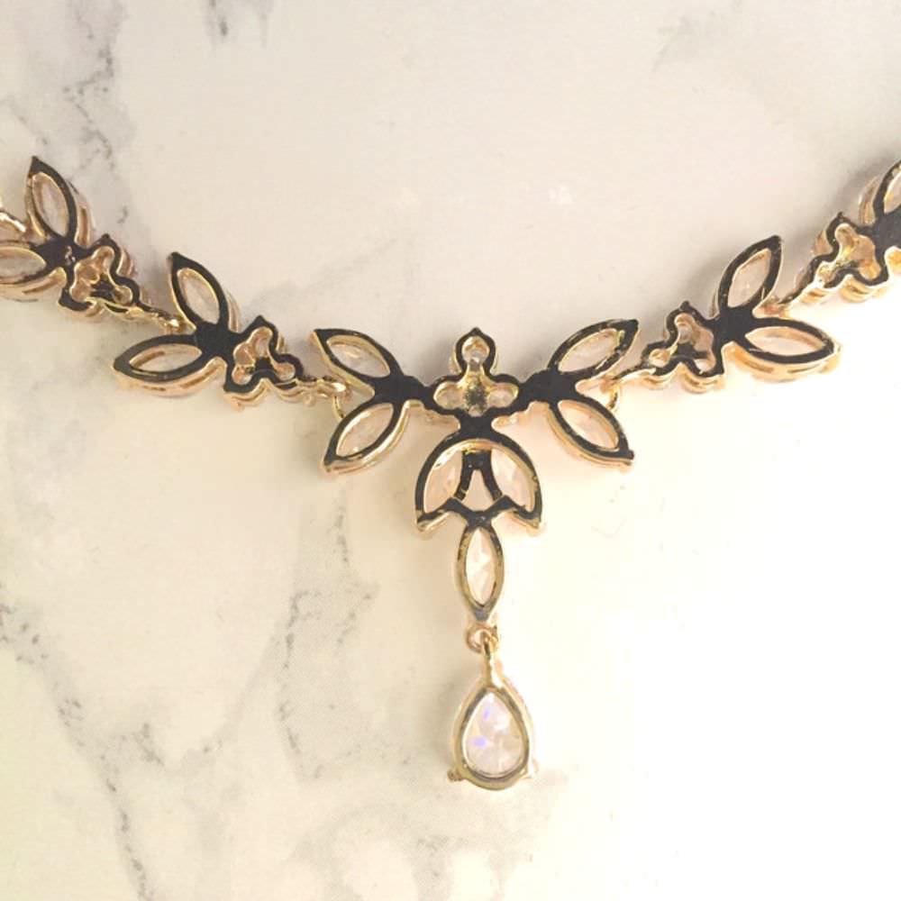 chic gold ジルコニアネックレス&ピアスセット/ブライダルアクセサリー 【結婚式 アクセサリーセット】