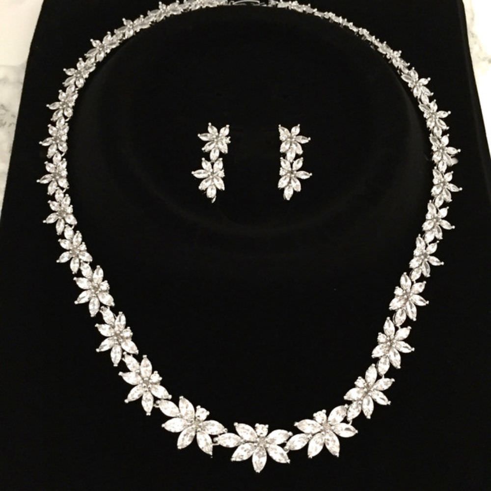 flower ジルコニアネックレス&ピアスセット/ブライダルアクセサリー 【結婚式 アクセサリーセット】