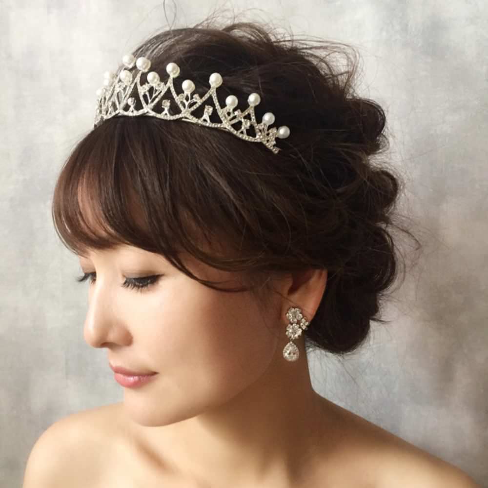 Aライントレスやフワフワなドレス、何にでも合うブライダルティアラです。