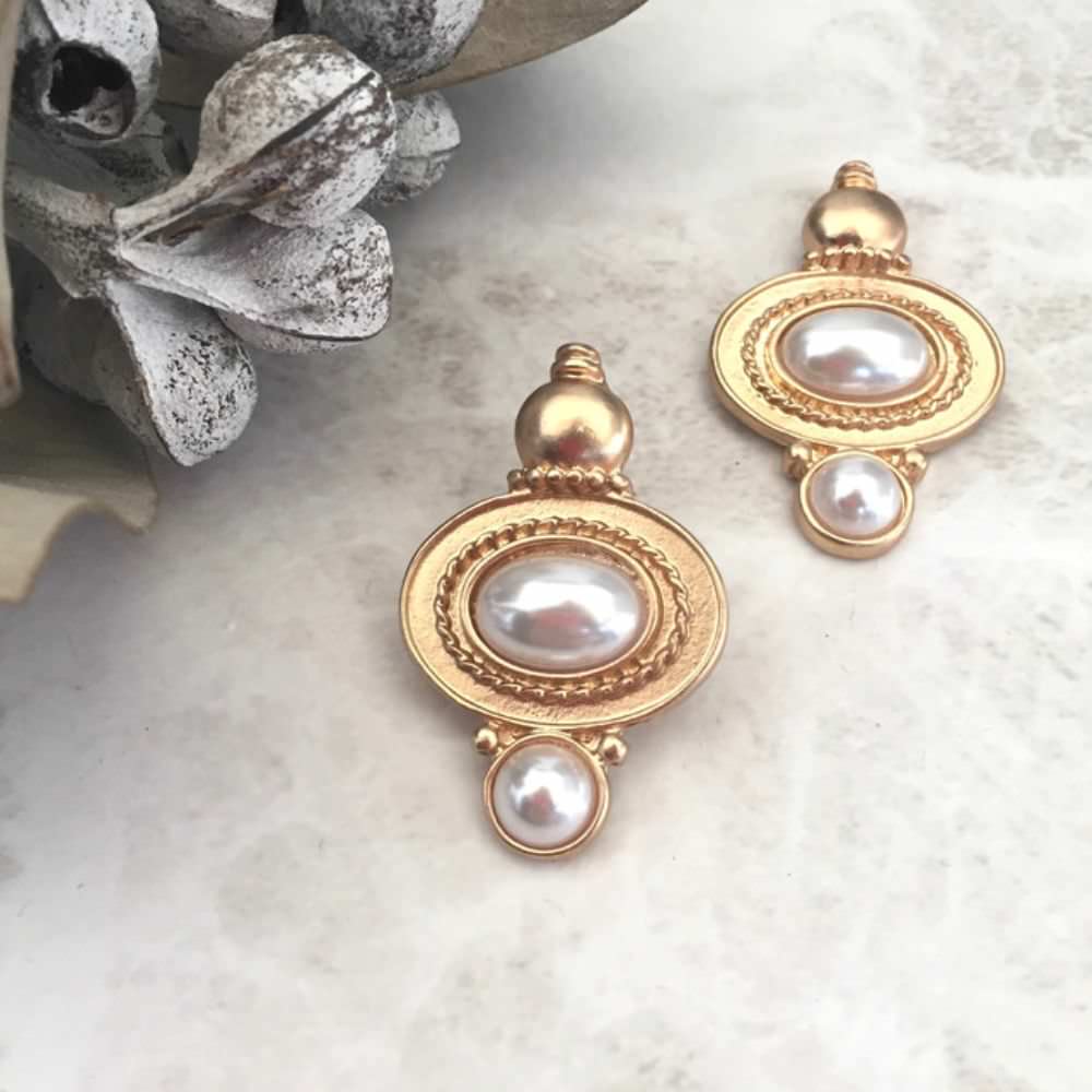 独特なフォルムで、アンティークな感じもあるピアス。