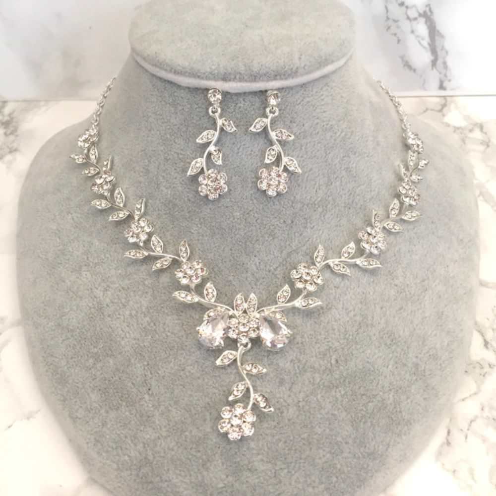 twig silver ビジューネックレス&ピアスセット/ブライダルアクセサリー 【結婚式 アクセサリーセット】