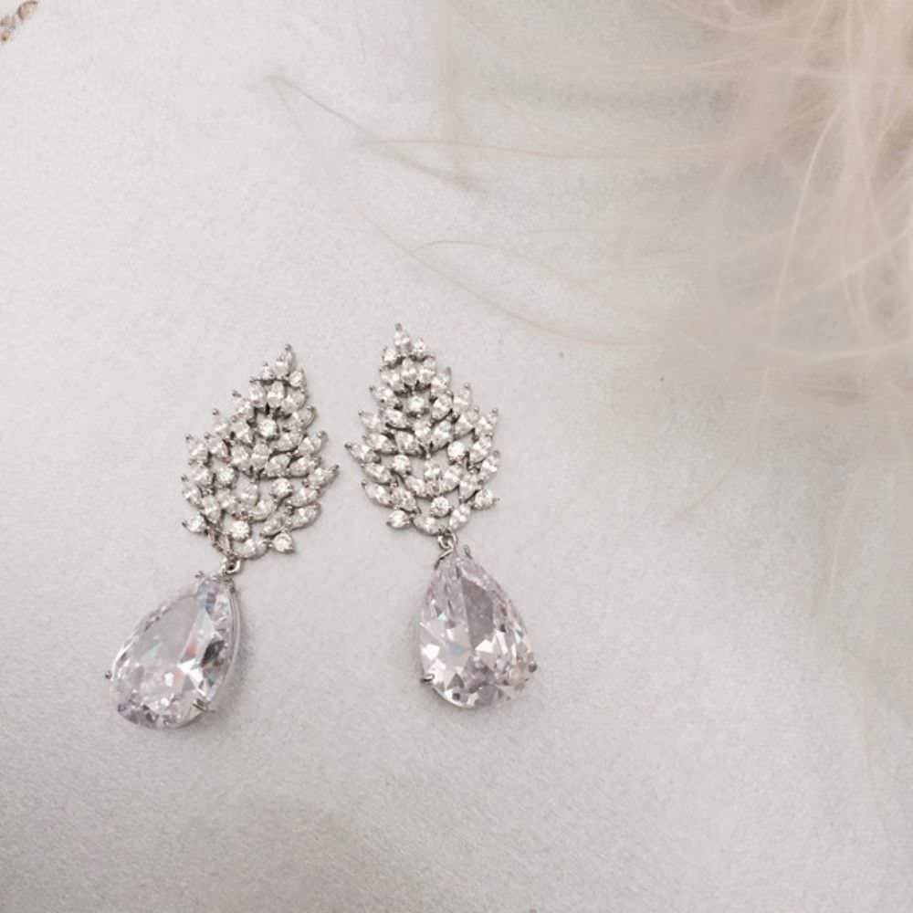 リーフのような樹木を連想させるデザインで、大粒のジルコニアがゆらゆらと。