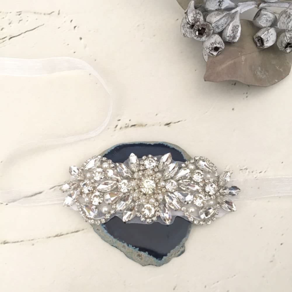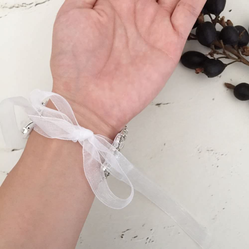 【ブレスレット】bijouビジューリボンブレスレット/アームレット/アンクレット/ブライダルアクセサリー 【結婚式 ブレスレット】