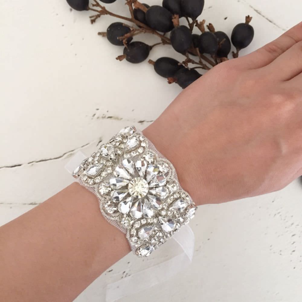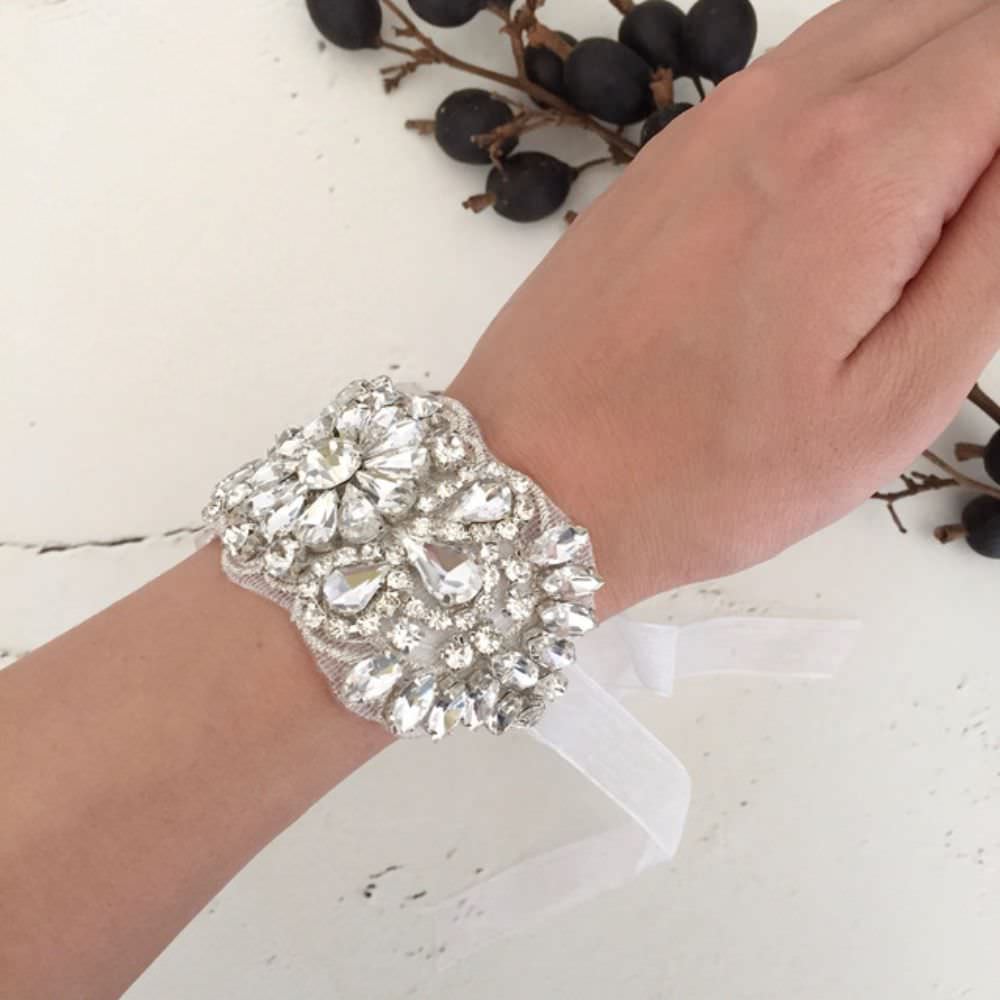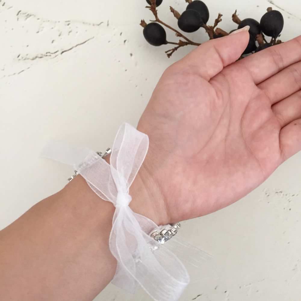 【ブレスレット】flower ビジューリボンブレスレット/アームレット/アンクレット/ブライダルアクセサリー 【結婚式 ブレスレット】