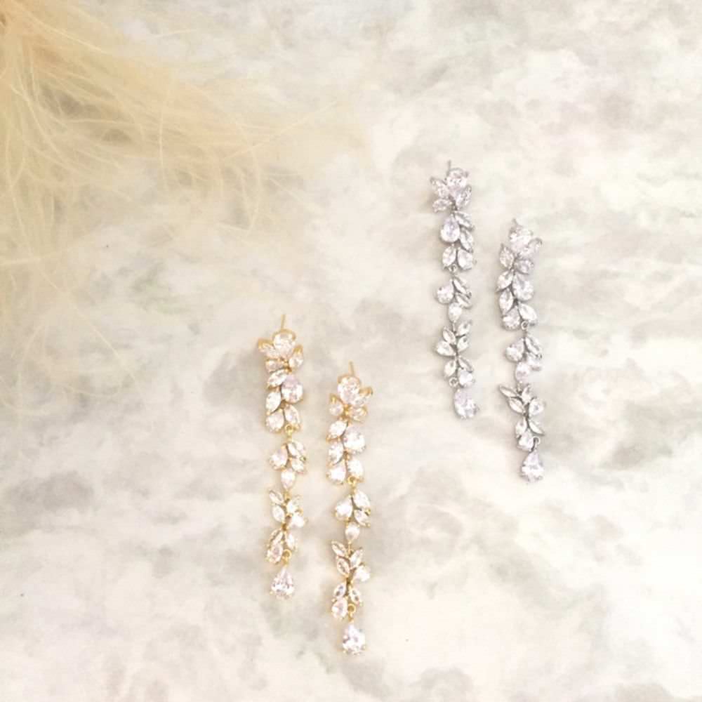 【ピアス・イヤリング】long ジルコニアピアス/ブライダルアクセサリー 【結婚式 ピアス イヤリング】