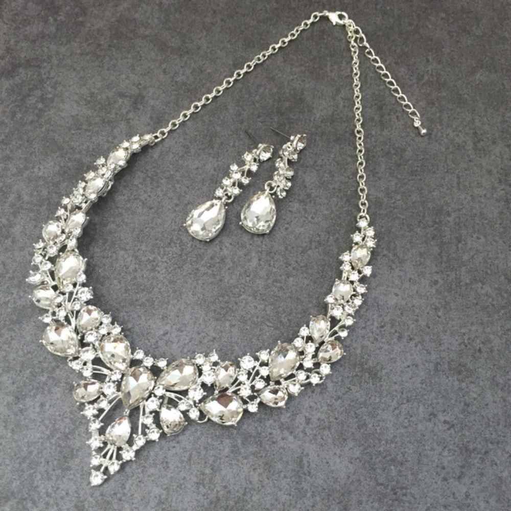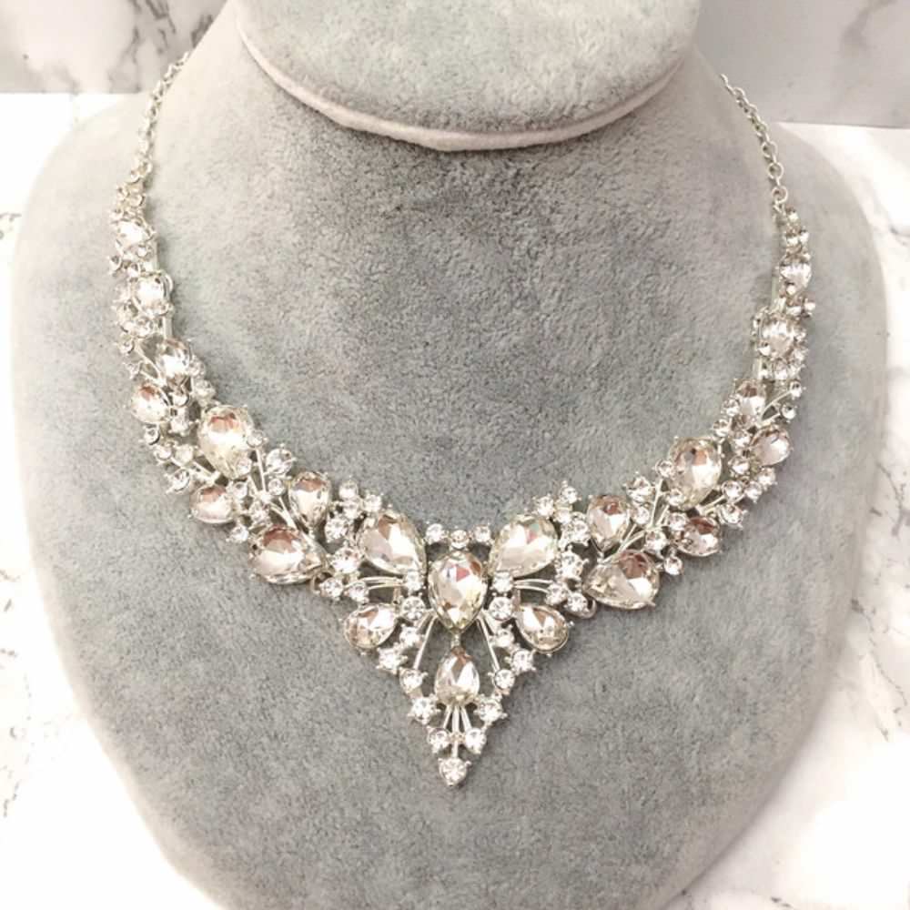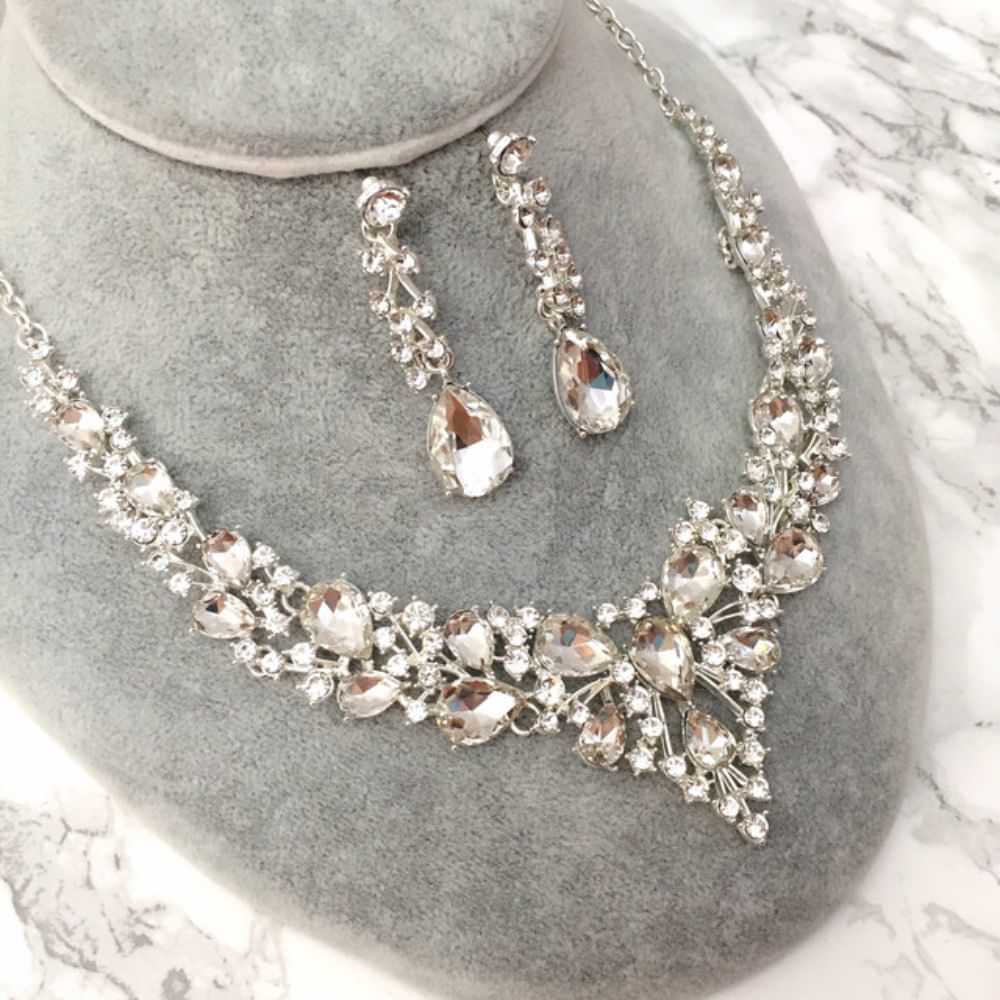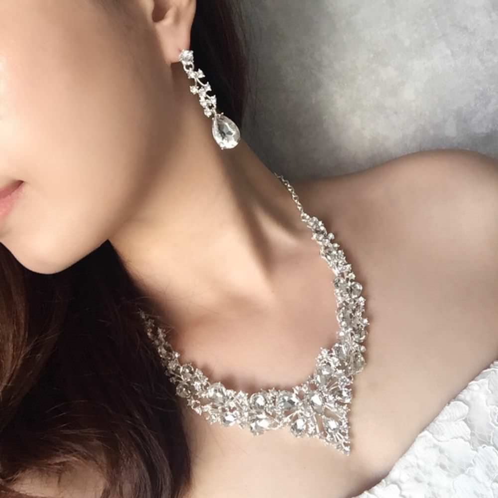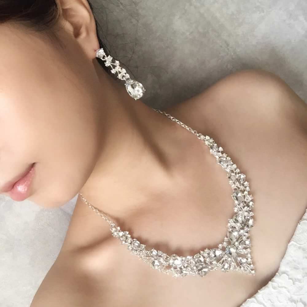 デザイン性も華やかさもあり大人花嫁にぜひ着用してほしいネックレスsetです。