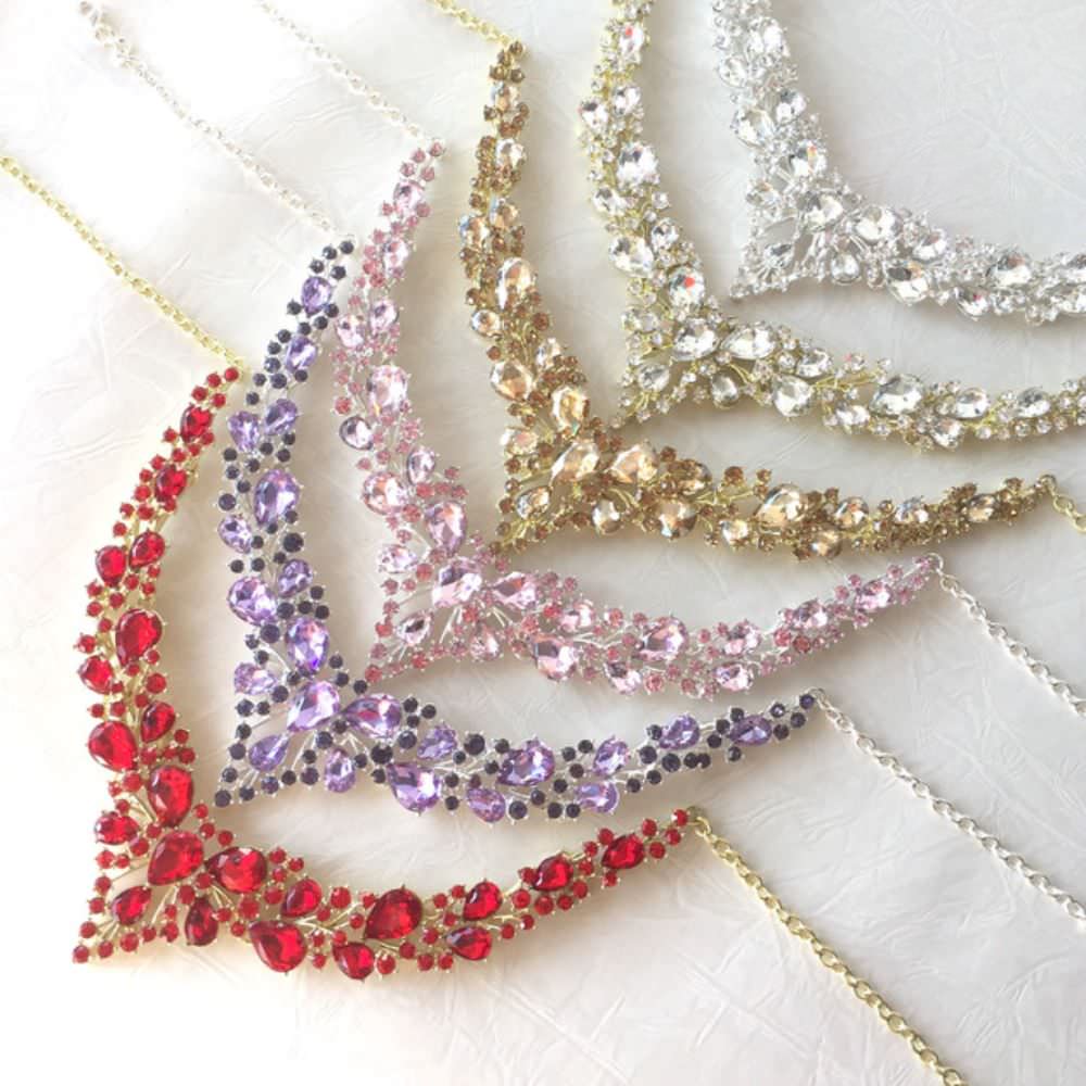 大粒のラインストーンと大小様々なラインストーンが首元を彩ってくれます。