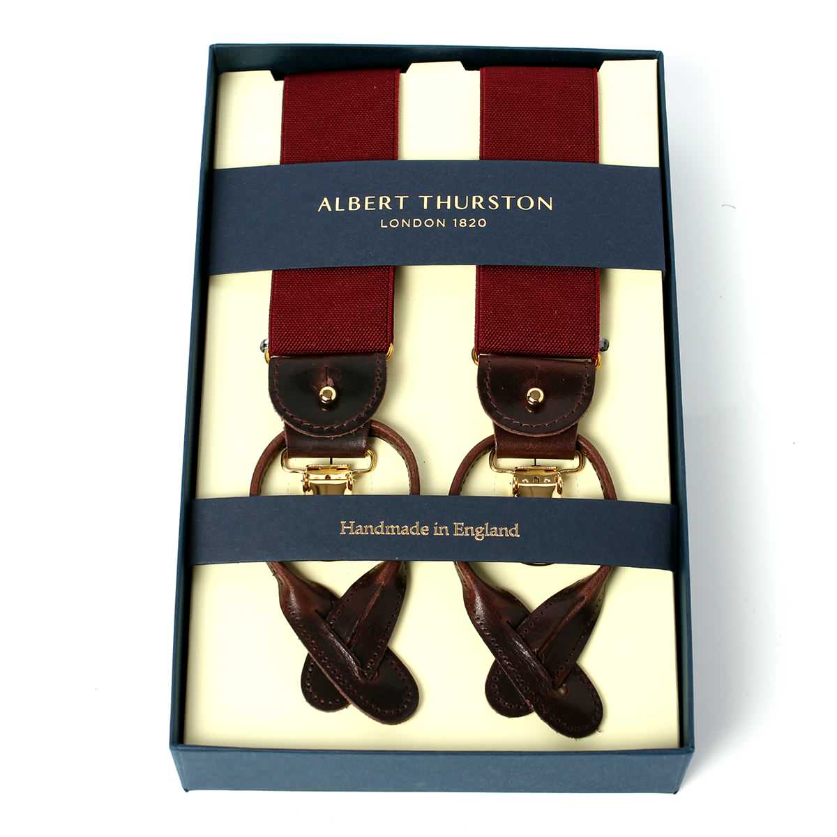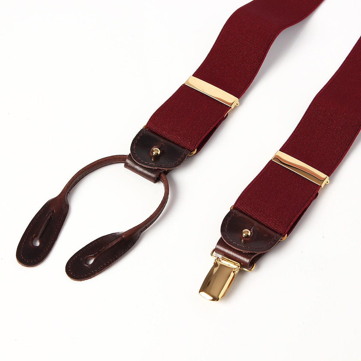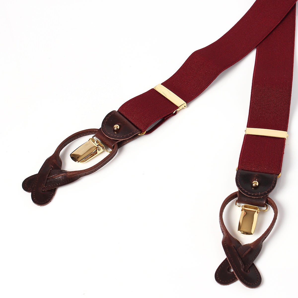 エレガントなワインレッドのサスペンダー。