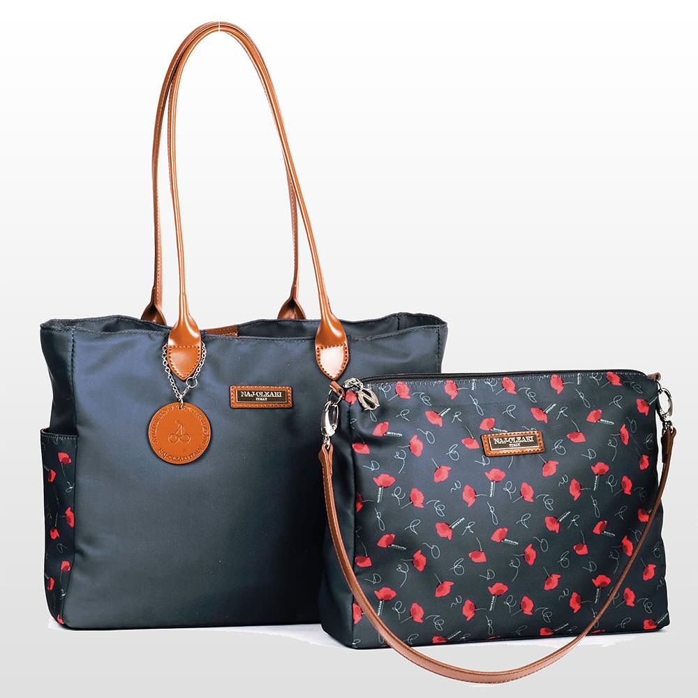 ナヨレアーリのプリントがキュートなオフィスにも使えるA4トートとショルダーのセット。ショルダーバッグはバッグインバッグとしても、単体としても使用できます。