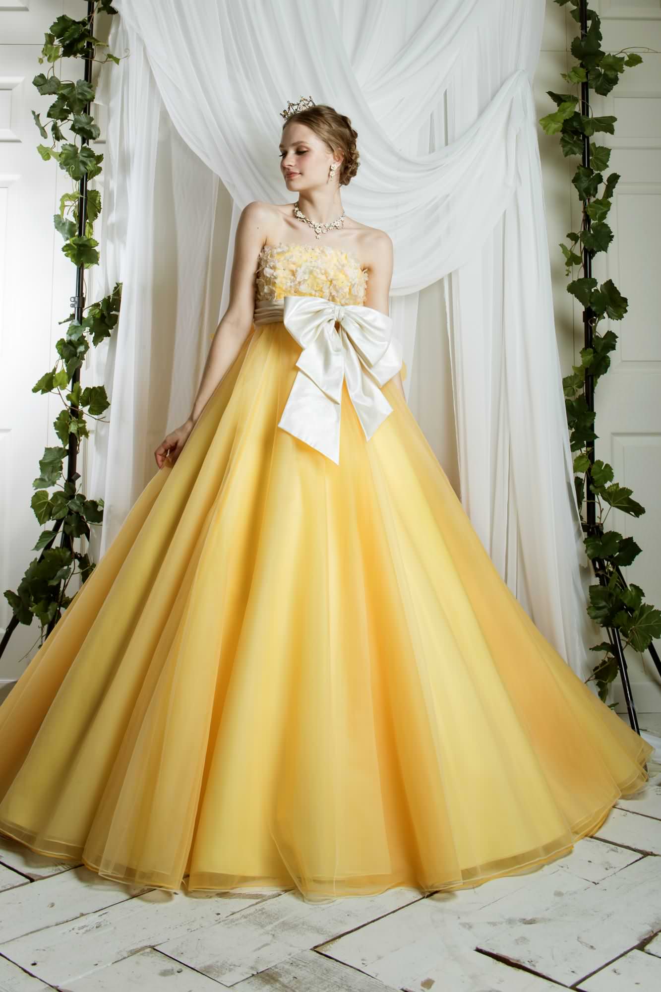 イエローエンパイアドレス 【結婚式 カラードレス レンタル】