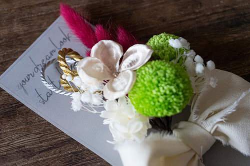 こちらのヘッドパーツは、使用した後に花束として素敵に飾れるデザインとなっております。