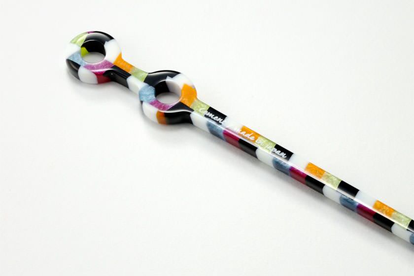 素材が持つ独特のカラフルさに、先端部に高級感のあるチタンを組み合わせました。