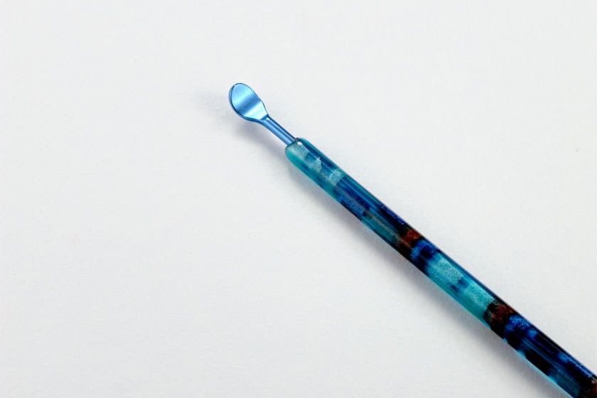 セルロースアセテートは、弾力性・吸湿性で人体との親和性も良い素材特性をもち、 ミミカキ先端部には、高級感のあるβチタンを組み合わせています。