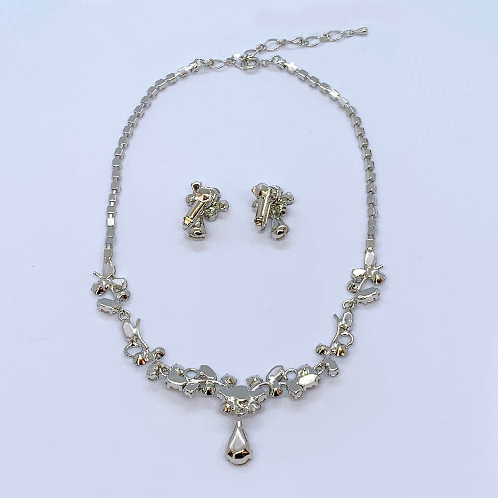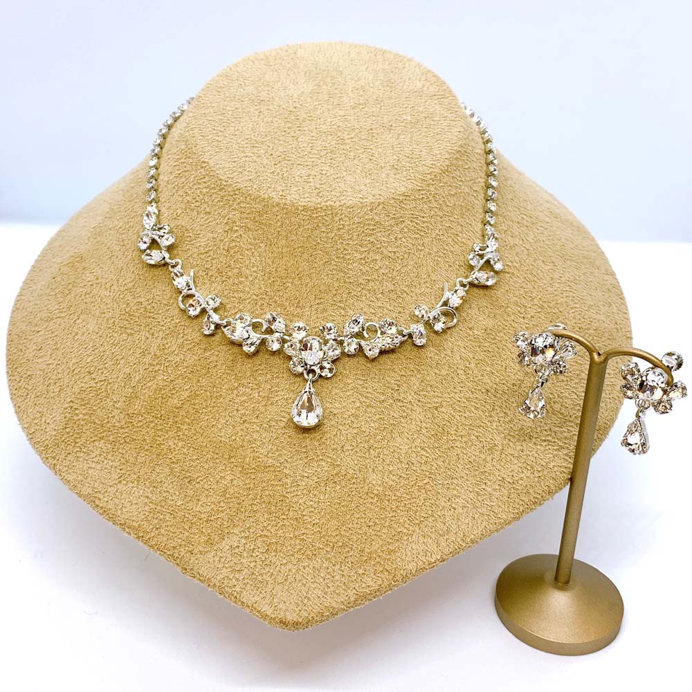 スワロフスキークリスタル使用のウェディングアクセサリー ネックレス・イヤリングセット/ブライダルアクセサリー 【結婚式 アクセサリーセット】