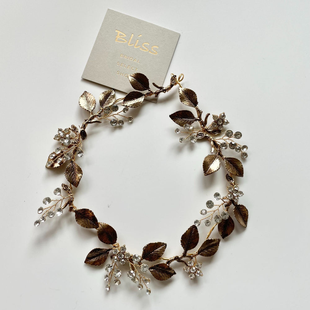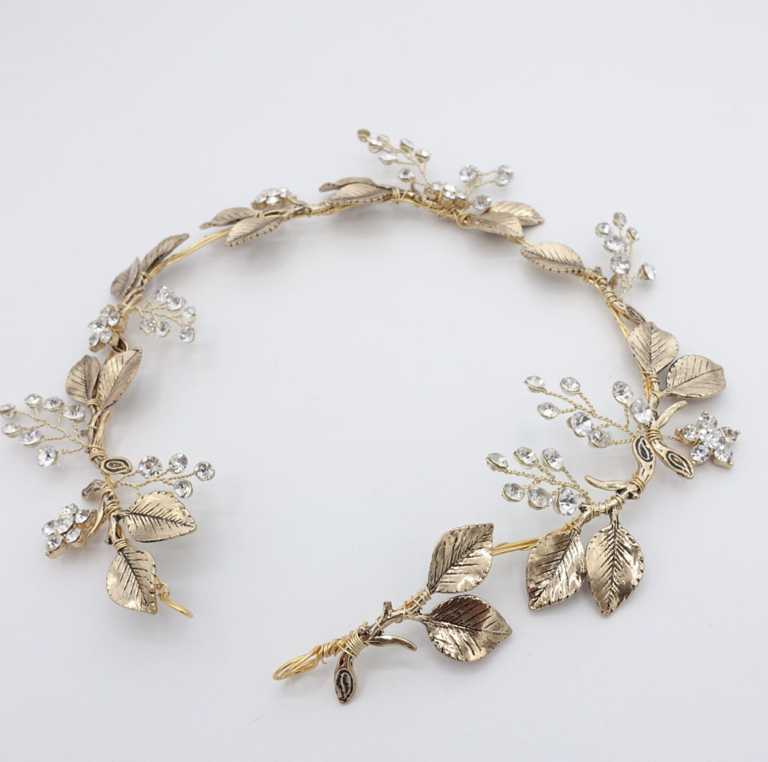 アンティークなゴールドカラーのリーフとラインストーンのみでシンプル。