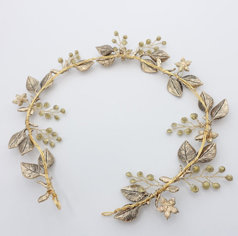【ヘッドドレス】小枝 リーフ アンティーク ゴールド ブライダルアクセサリー 【結婚式 ヘアアクセサリー】