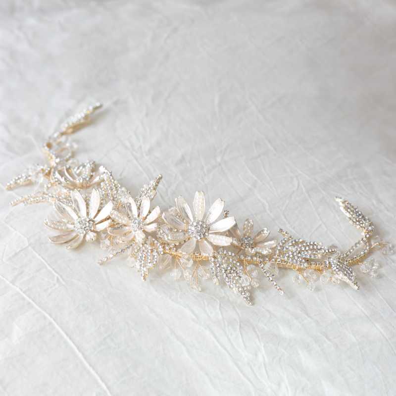 【ヘッドドレス】小枝 デイジーフラワー マットゴールド ブライダルアクセサリー 【結婚式 ヘアアクセサリー】