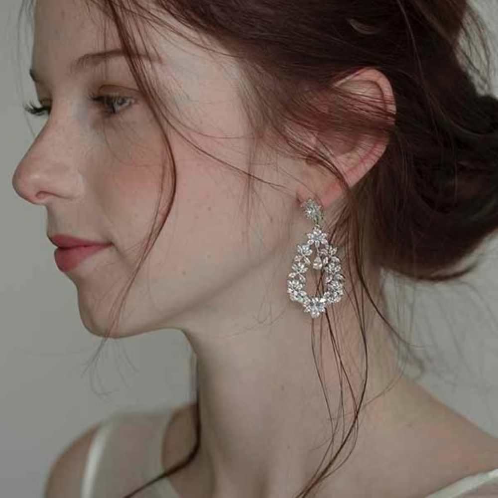 花の冠の中央に揺れるストーン一粒の愛らしいデザイン