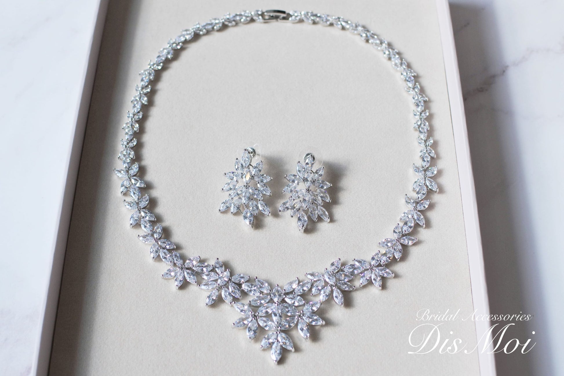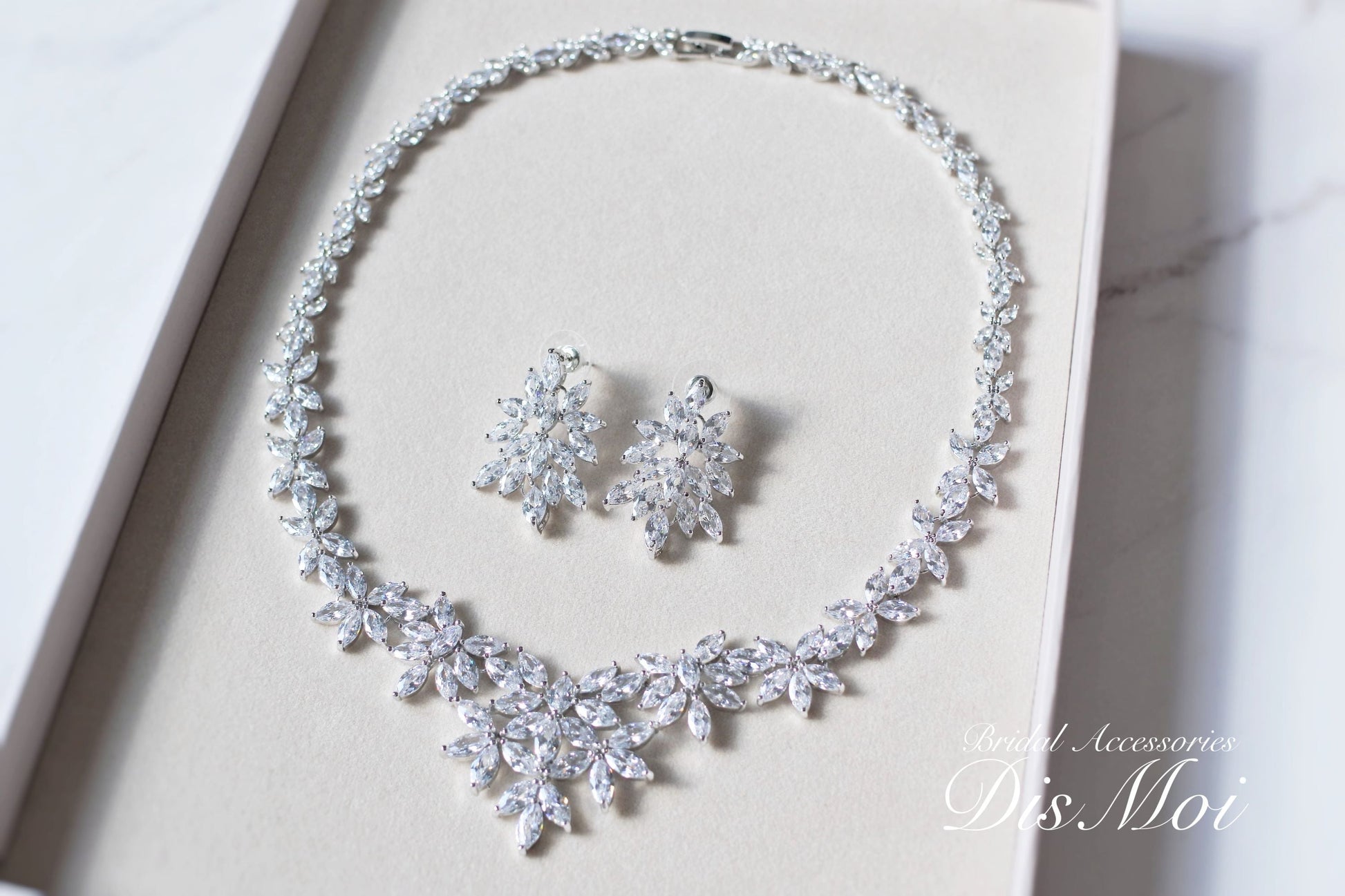 ジルコニアネックレス×ピアス/イヤリングセット ~ブライダルネックレス~ ≪ZNP-07/ZNE-07≫【結婚式 アクセサリーセット】