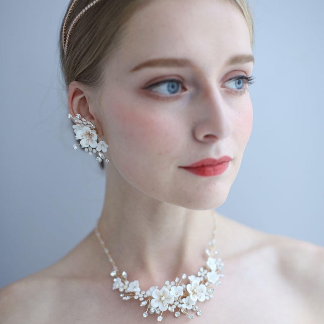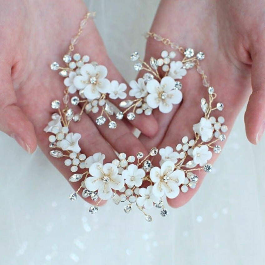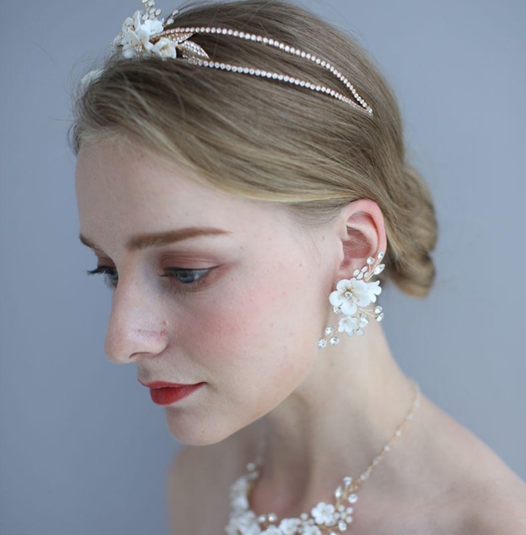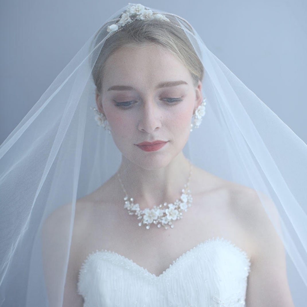 立体的に施されたクレイフラワーが花嫁様のお顔周りをより一層華やかに引き立てます。