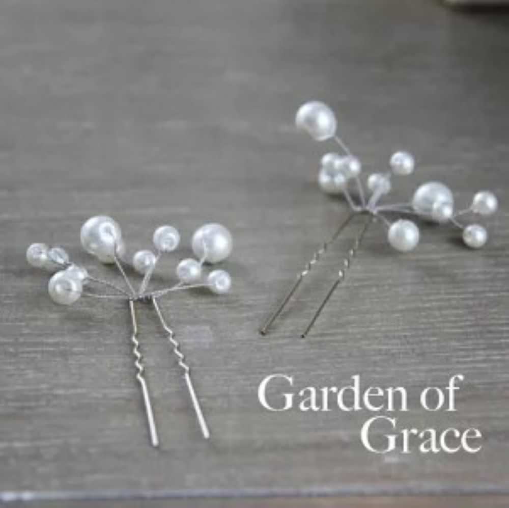 素材の良いアーティフィシャルフラワーや手作りのパールピン2本など