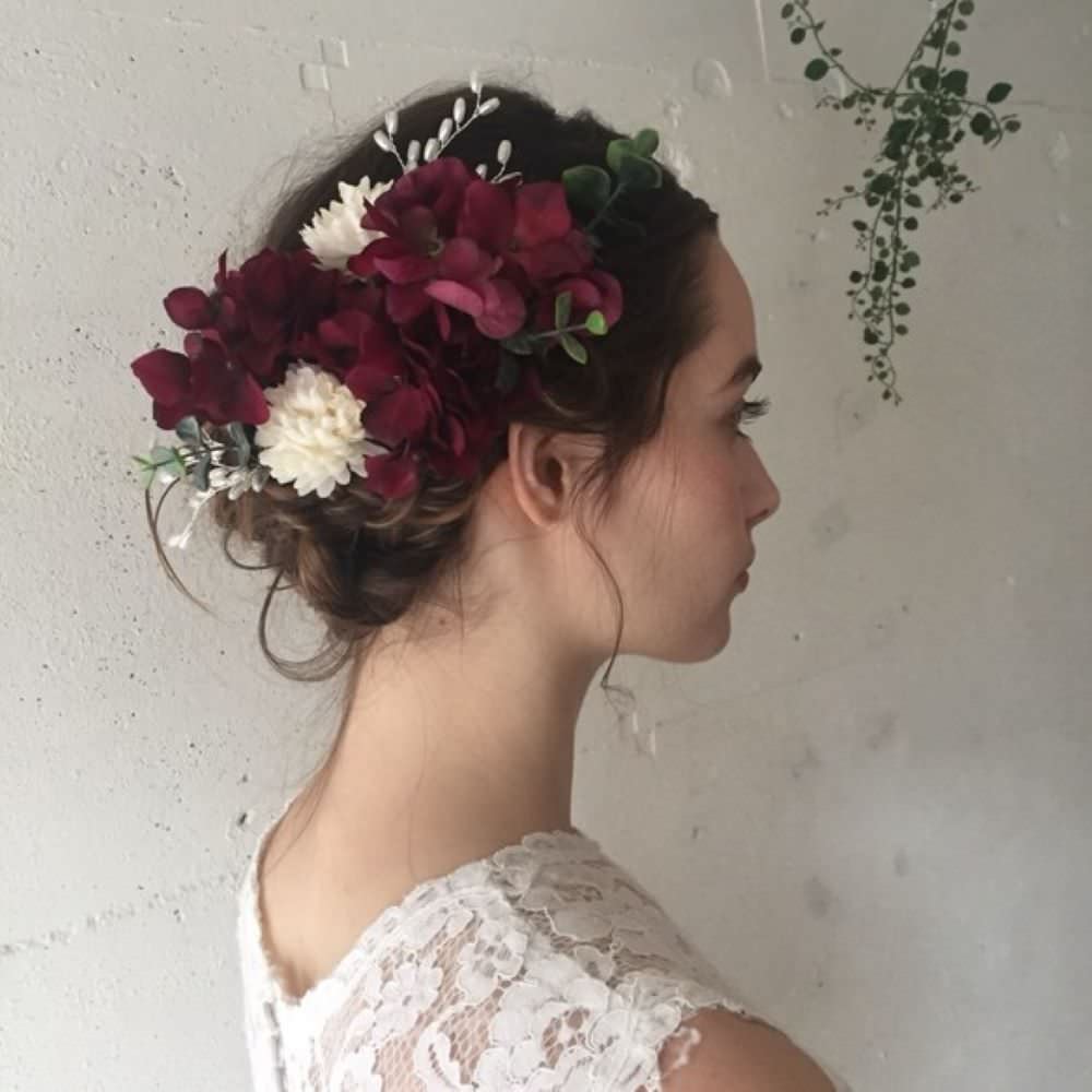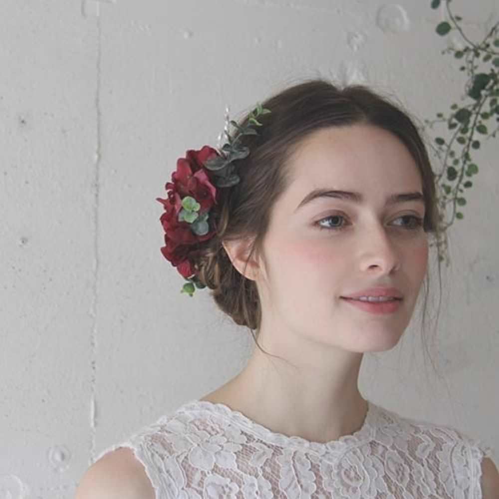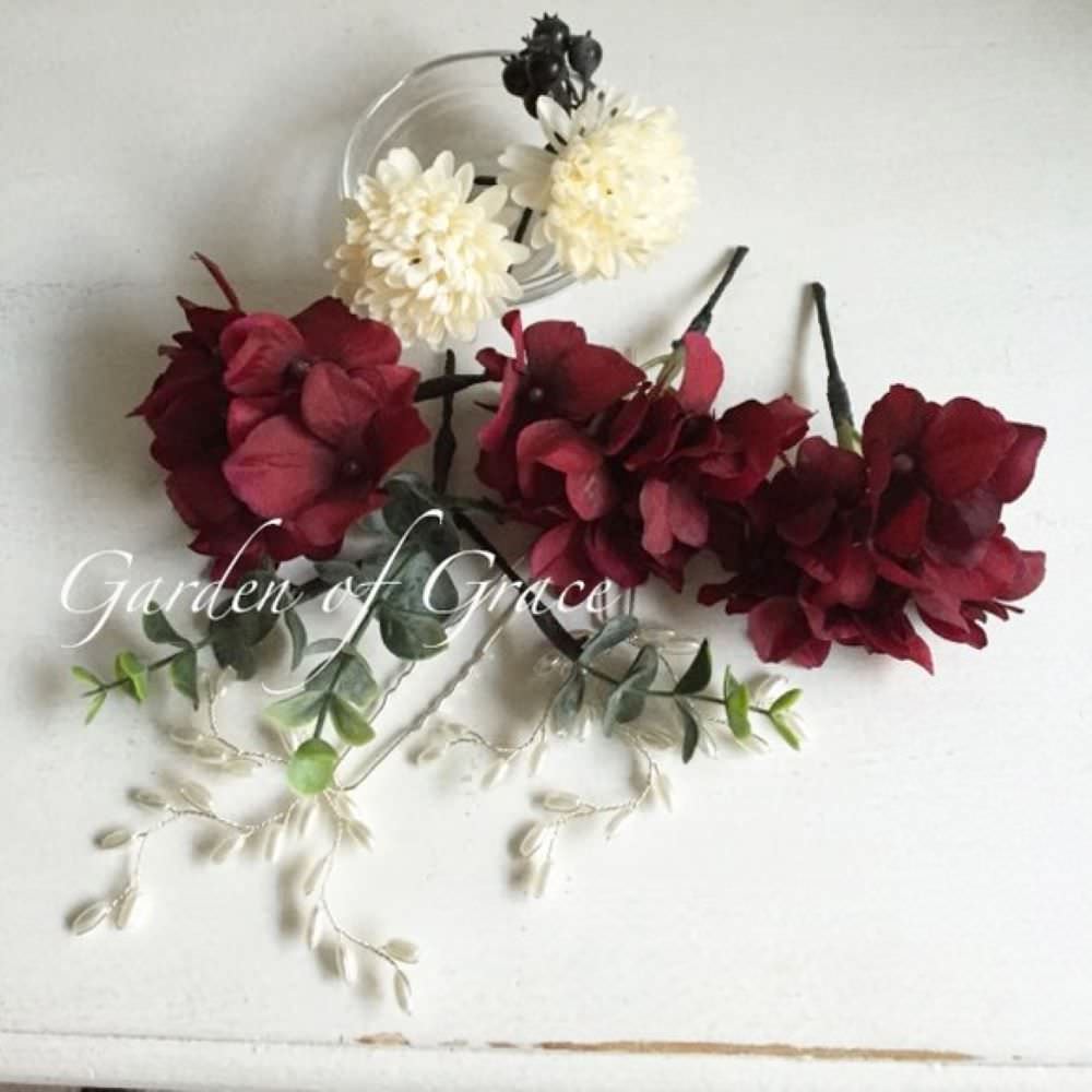 ウエディングヘッドドレス 和装や成人式に【ボルドー11p】 【結婚式 ヘアアクセサリー】
