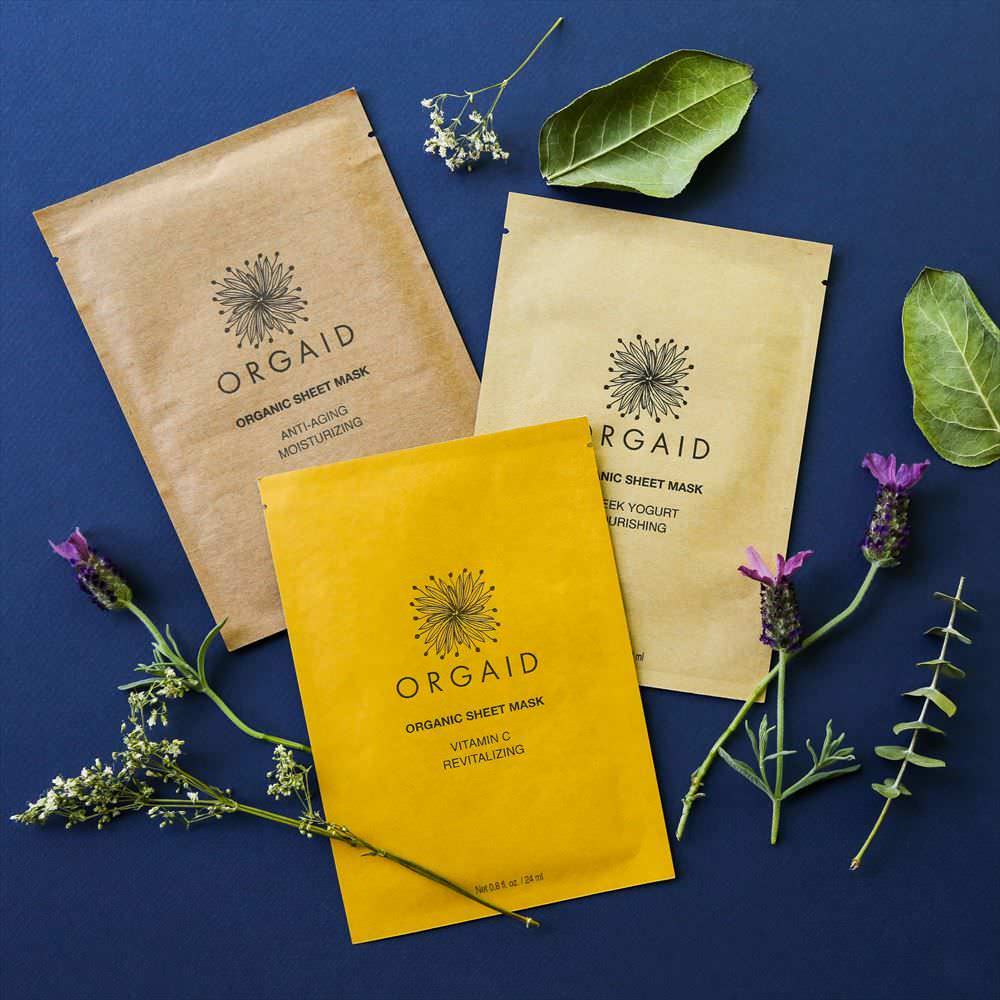 ORGAID(オーガエイド)のシートマスクは、本当に肌に必要なものを厳選し、不要な合成成分や肌トラブルの可能性がある成分はすべて取り除いた処方。敏感肌の方にもうれしい心地よい使用感です。