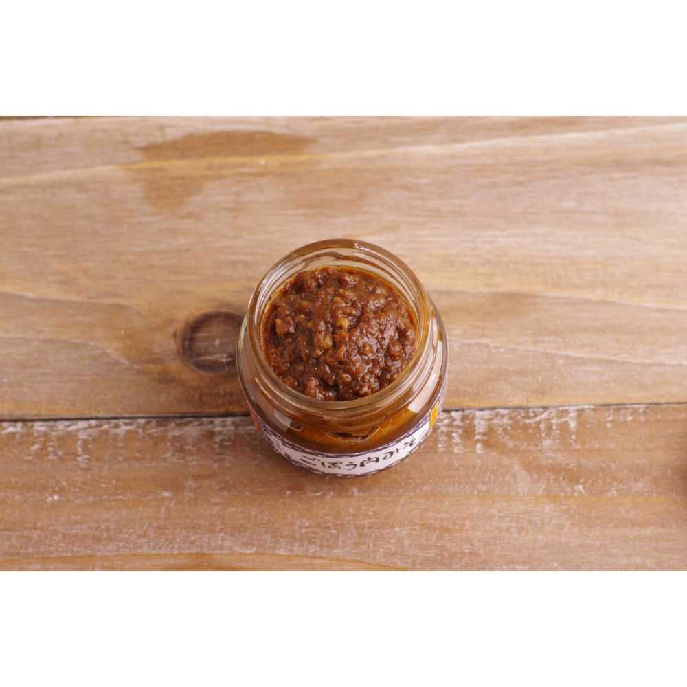 砂丘ごぼうをたっぷり使用し、八丁味噌など4種の厳選味噌をオリジナルした「ごぼう肉みそ」。