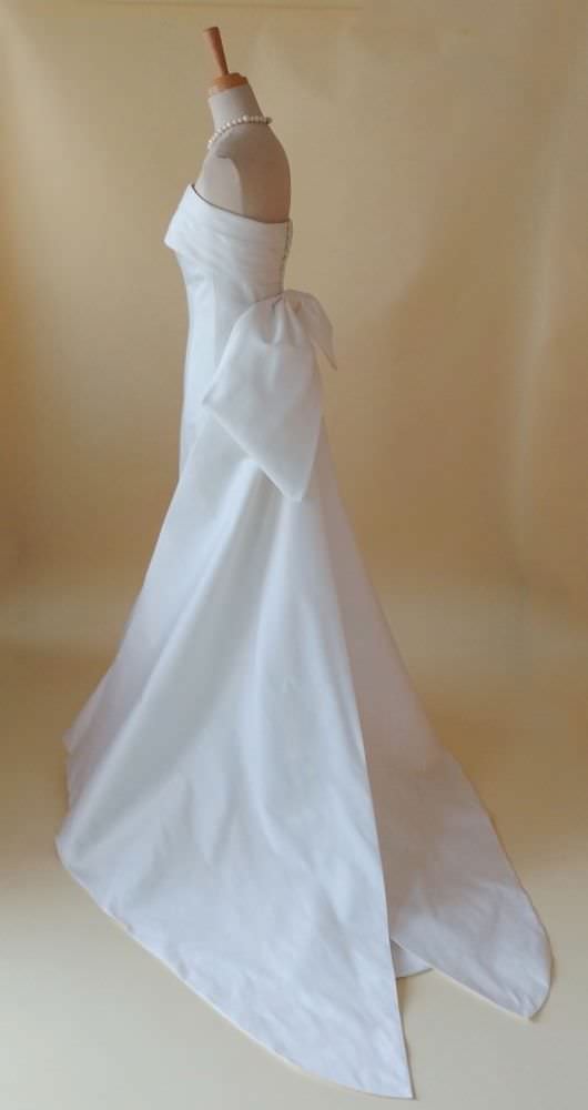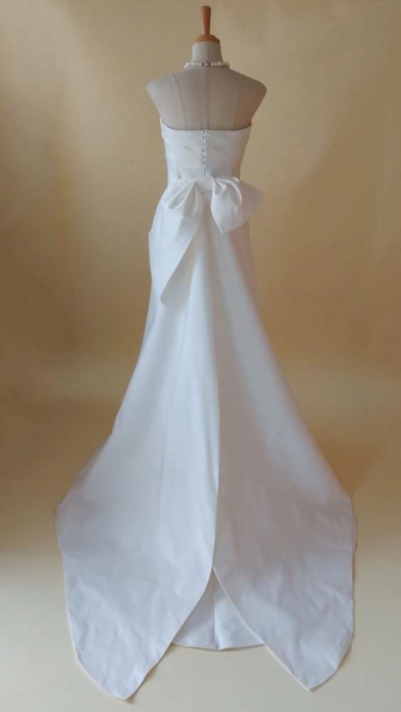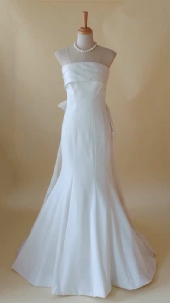 シルエットの美しさで魅せるマーメイドドレス。ミカド素材の張りのある質感はシルエットを美しくキープ。