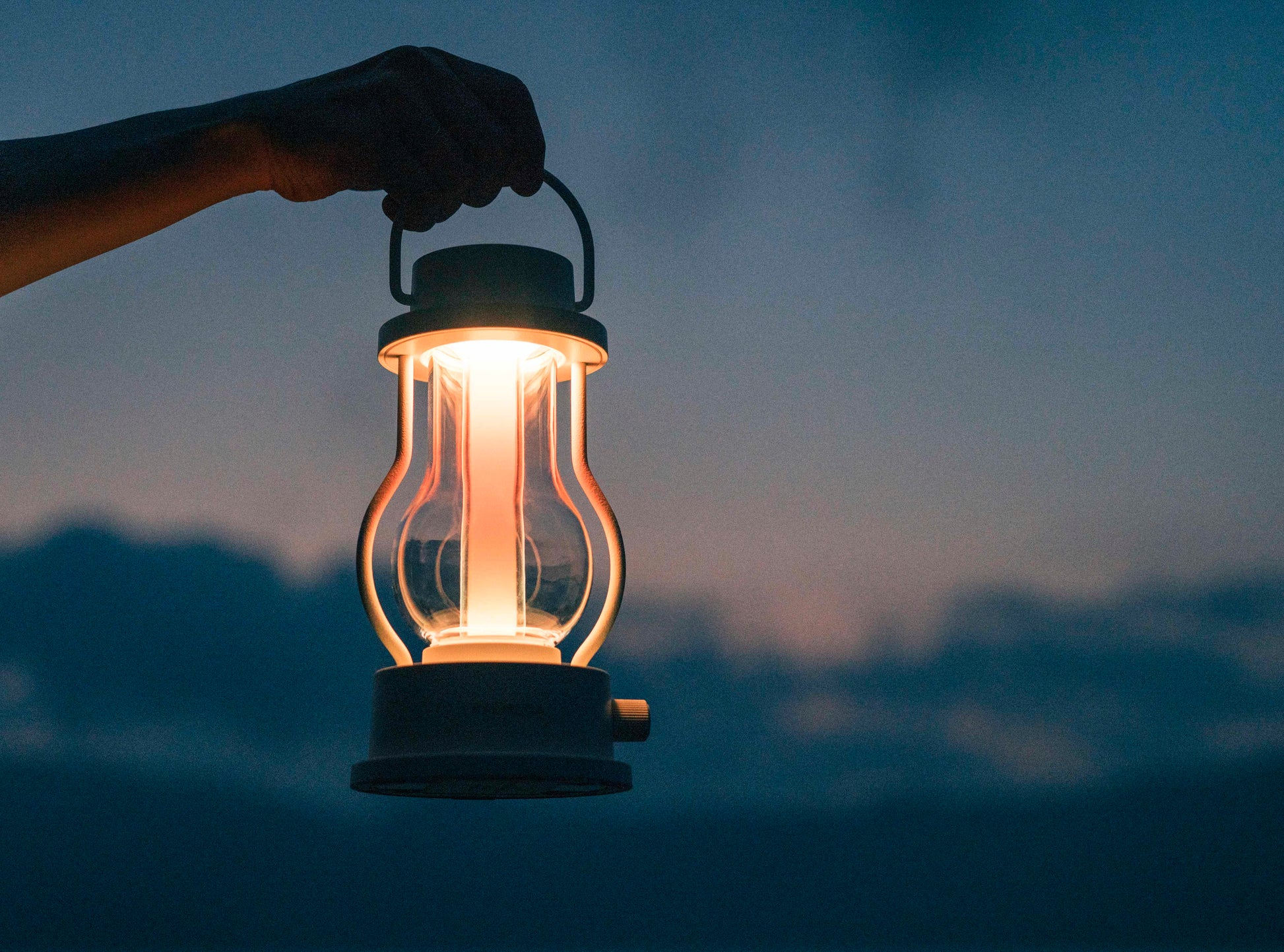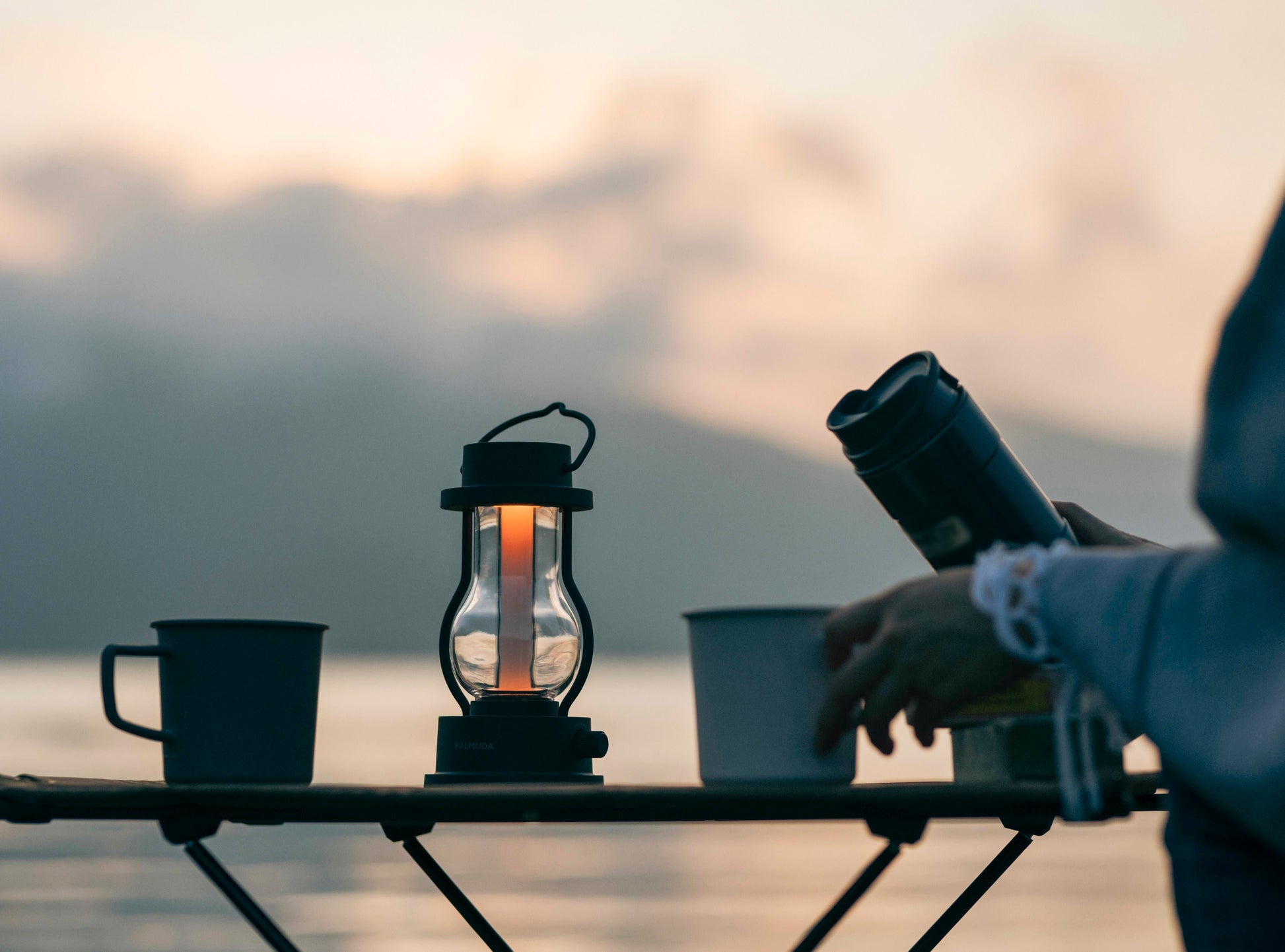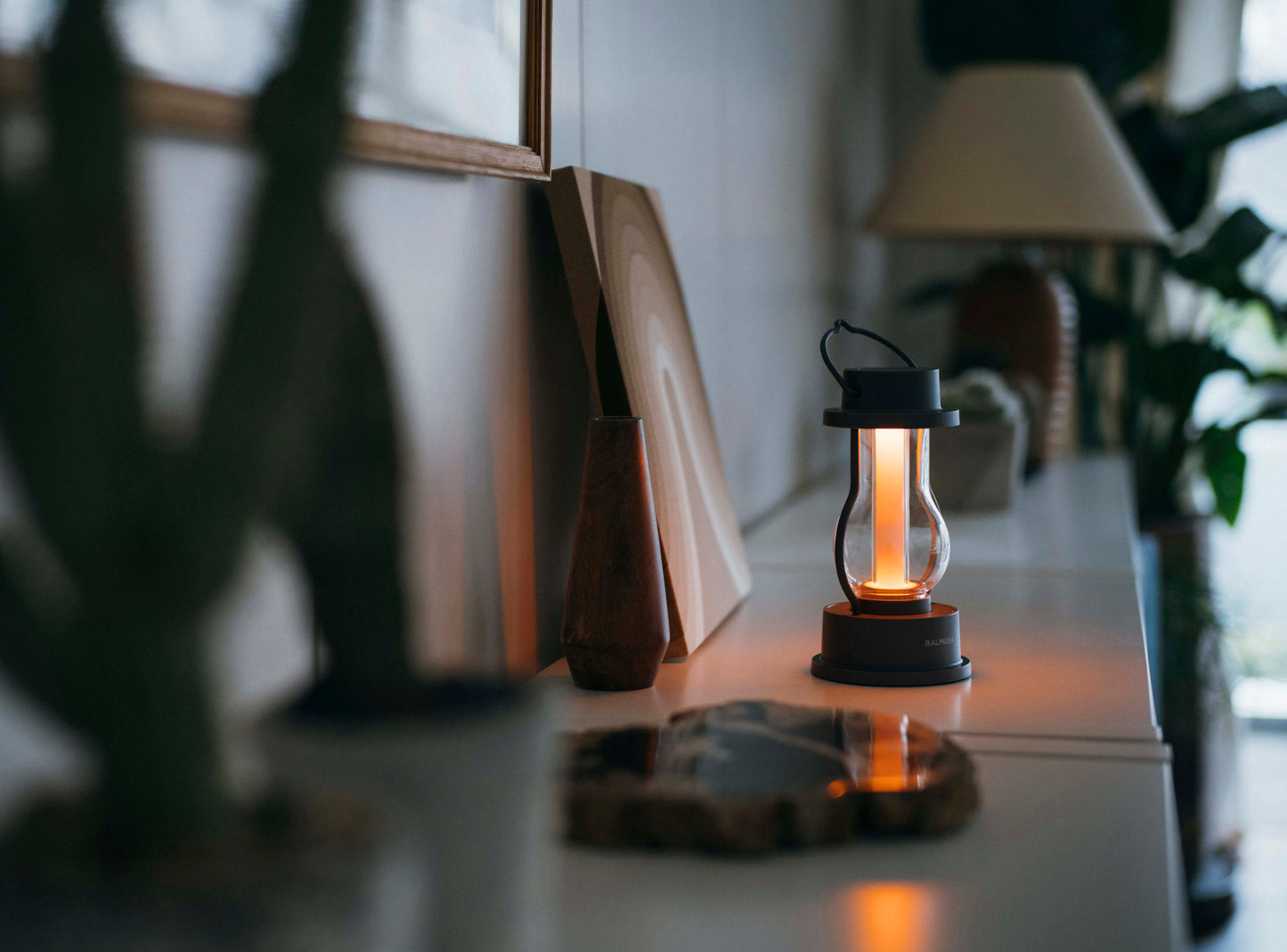 キャンドルのように揺らぐ暖色の灯りから、読書灯にも使える温白色の灯りまで。日常の何気ない時間を、少しだけ特別に彩るLEDランタン。バッテリー内蔵で部屋中どこでも、アウトドアにも持ち出してお使いいただけます。