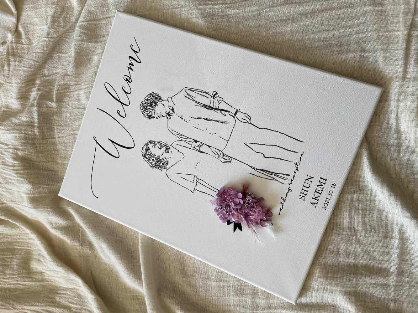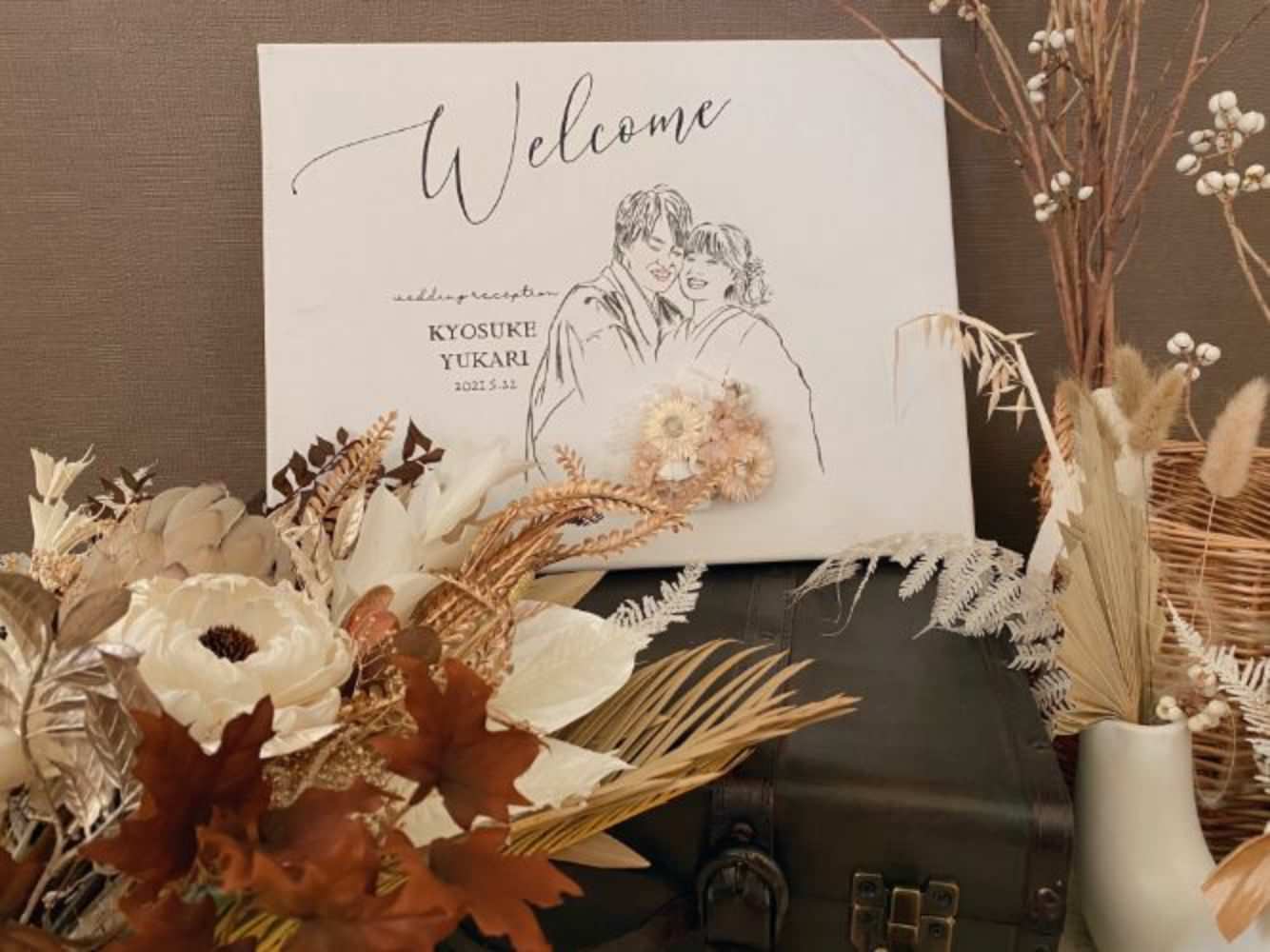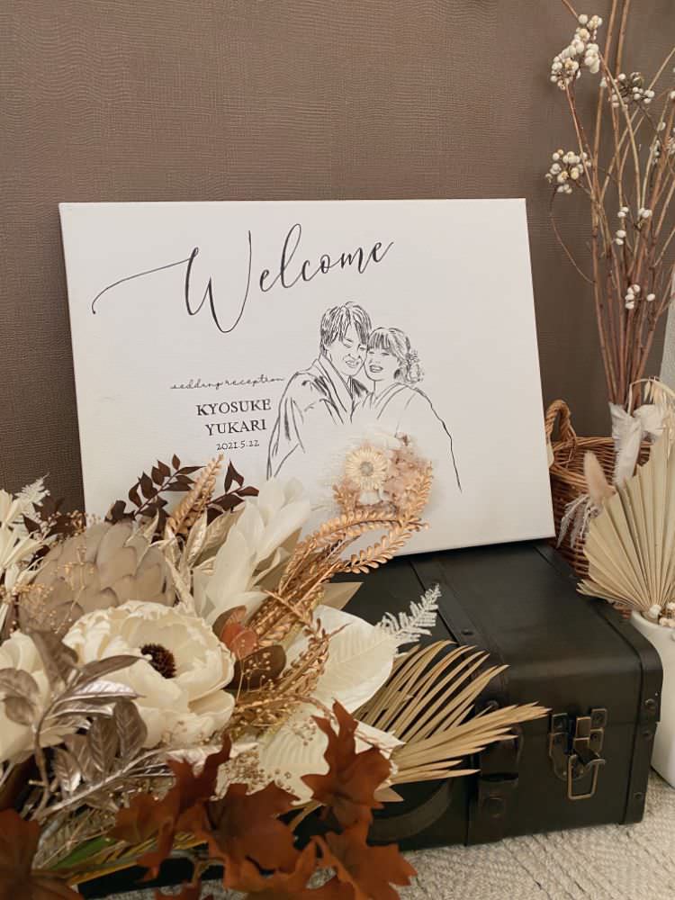 welcomeボード(似顔絵×ドライフラワー) 【41cm×31.8cm/オリジナル】 【結婚式 ウェルカムボード】