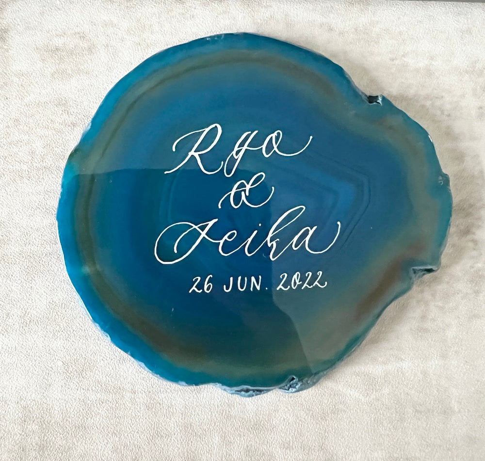 天然石にはひとつとして同じものはないので、カリグラフィーも加わり世界にひとつだけのオリジナルアイテムになります。