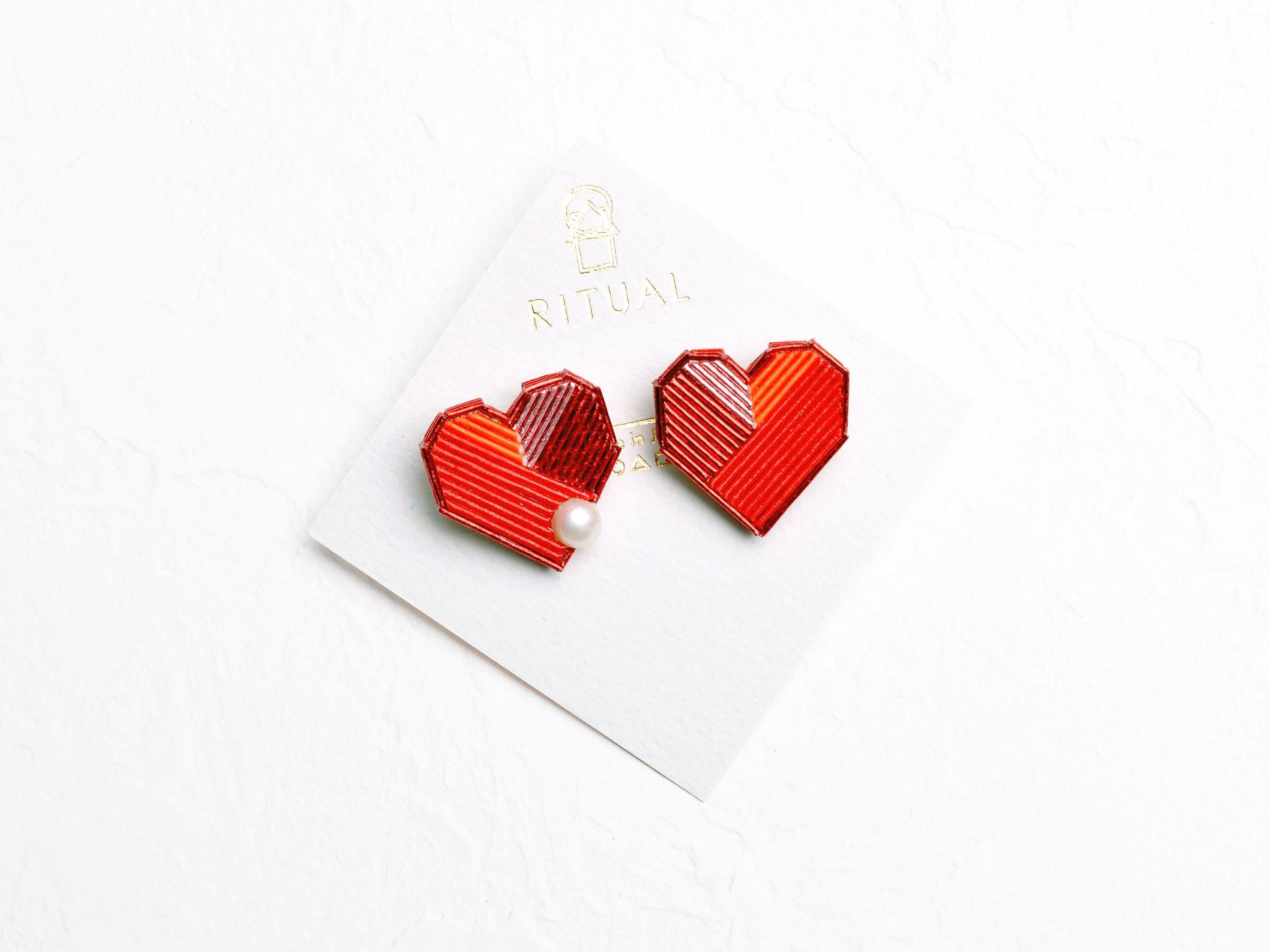 RITUAL 水引 ピアス/イヤリング [Heart Pearl][Red]/ブライダルアクセサリー 【結婚式 和装 アクセサリー】