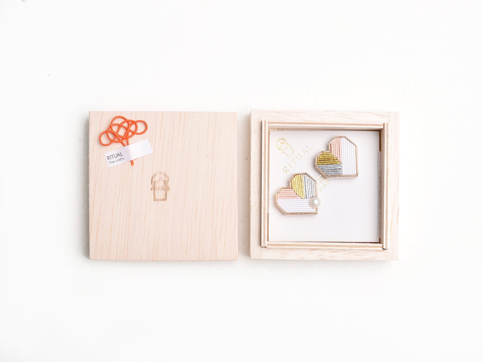 楓の木から手作業によって成型・研磨した土台の上に、水引を一本一本貼細工していくwood シリーズ