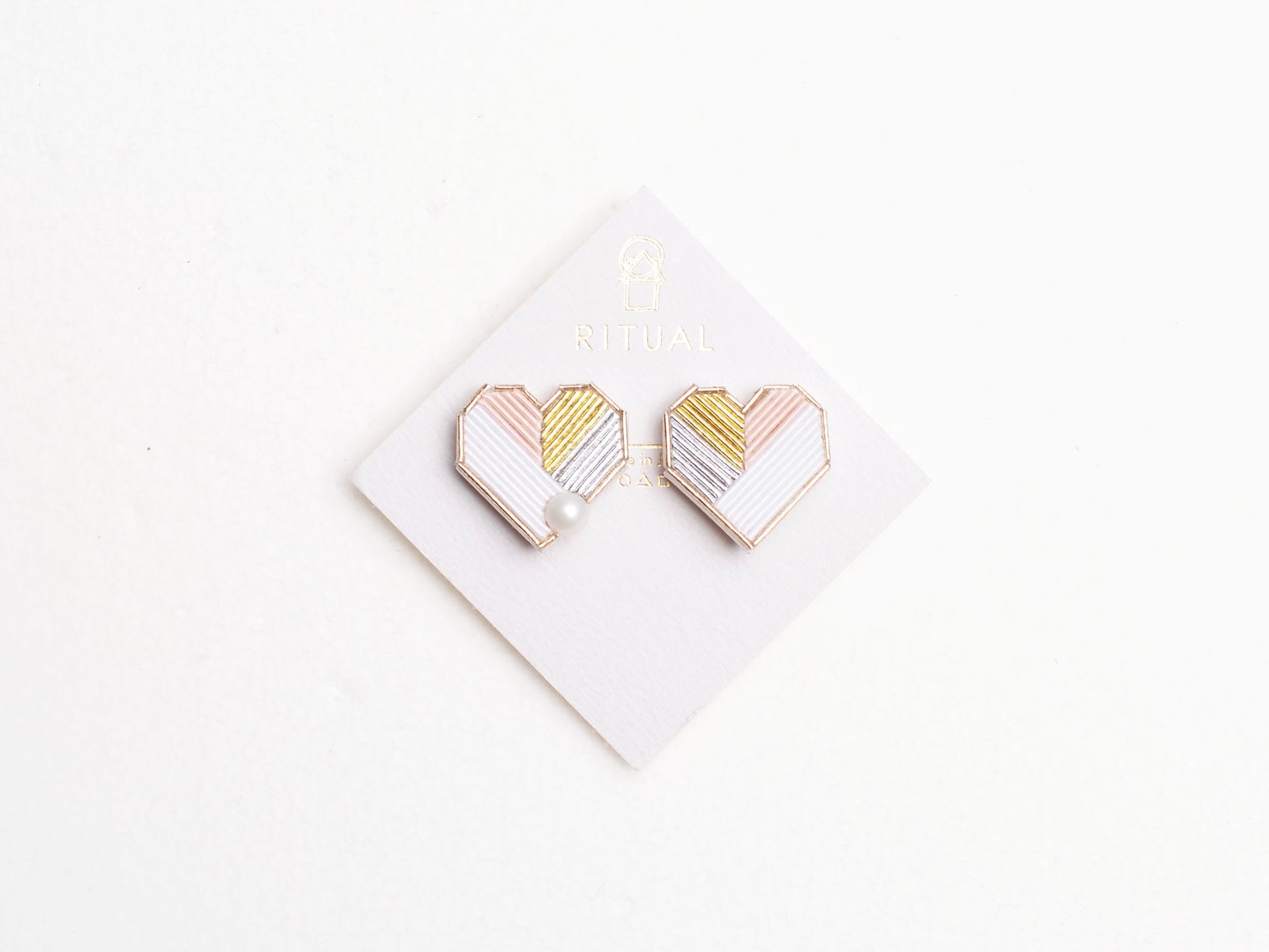 RITUAL 水引 ピアス/イヤリング [Heart Pearl][White]/ブライダルアクセサリー 【結婚式 和装 アクセサリー】