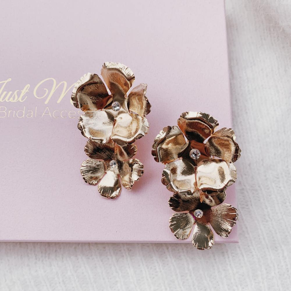 【イヤリング】Vintage Remake Series*Brassフラワーイヤリング/ブライダルアクセサリー 【結婚式 ピアス イヤリング】