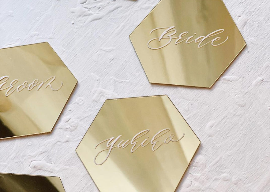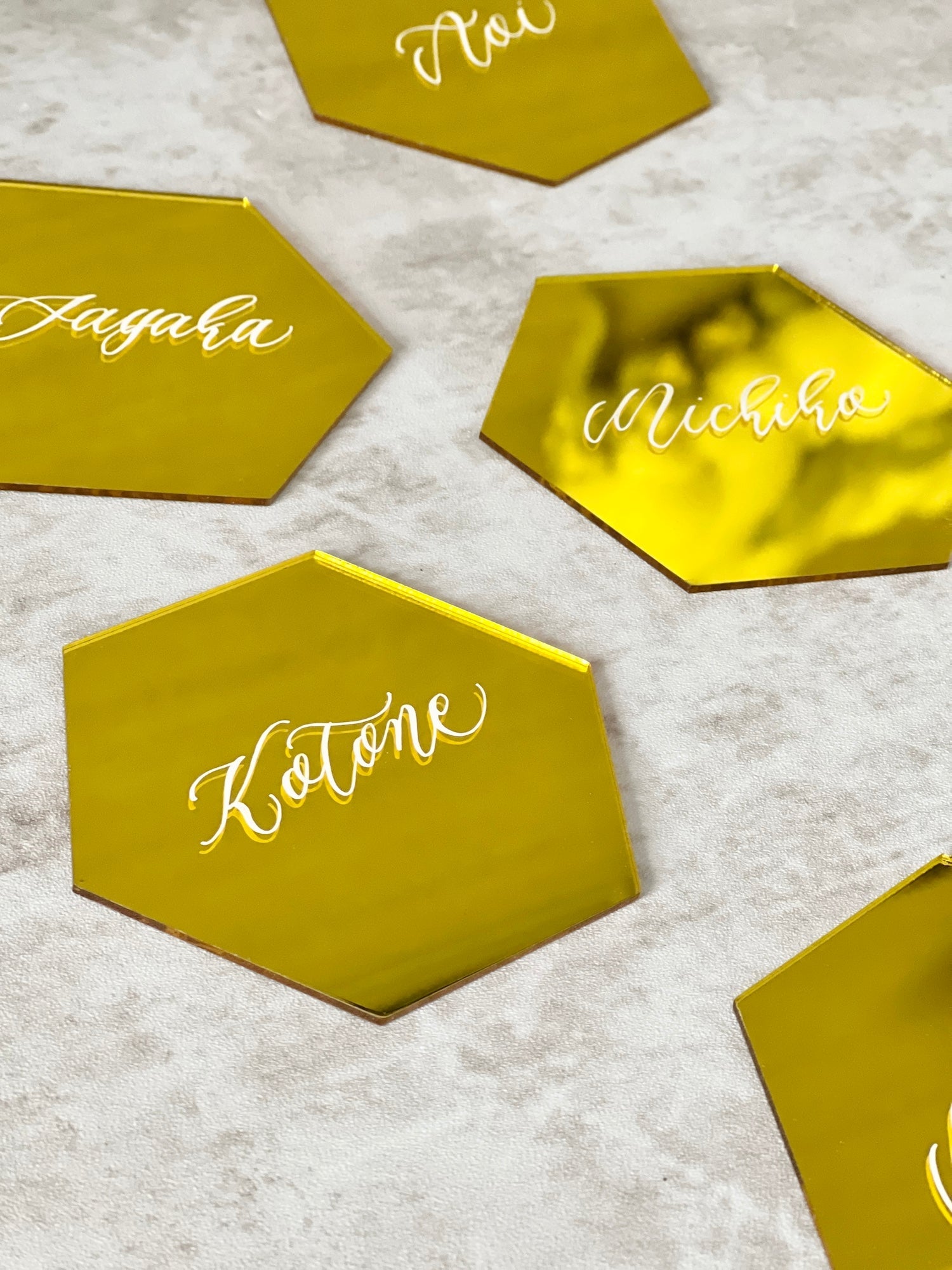【結婚式 席札】ヘキサゴンミラー席札(ゴールド)【結婚式 ペーパー 席札】