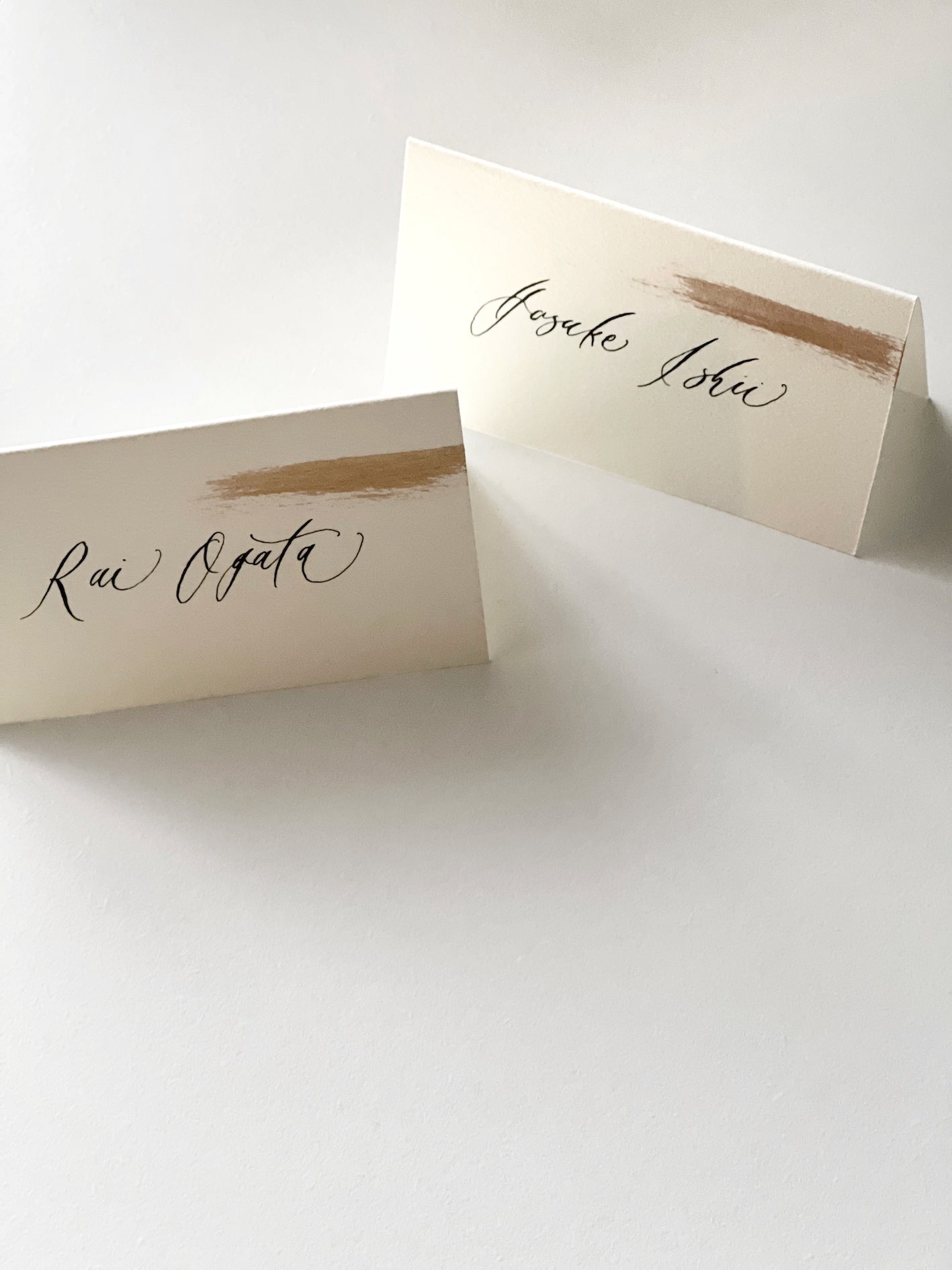ひとつずつ丁寧にカリグラフィーで文字入れを施します。
