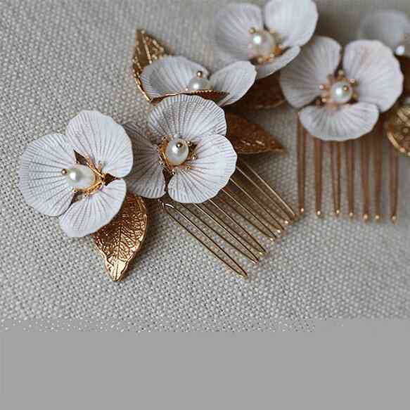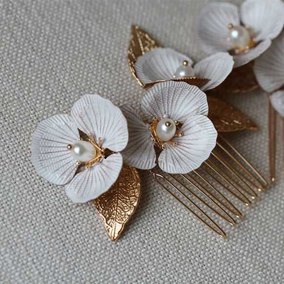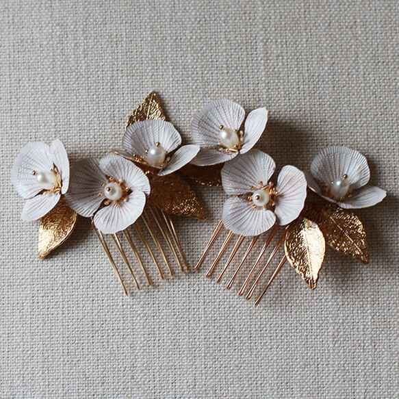 ホワイトフラワー ゴールドアクセサリー 【クレアヘアコーム2個組】 【結婚式 ヘアアクセサリー】