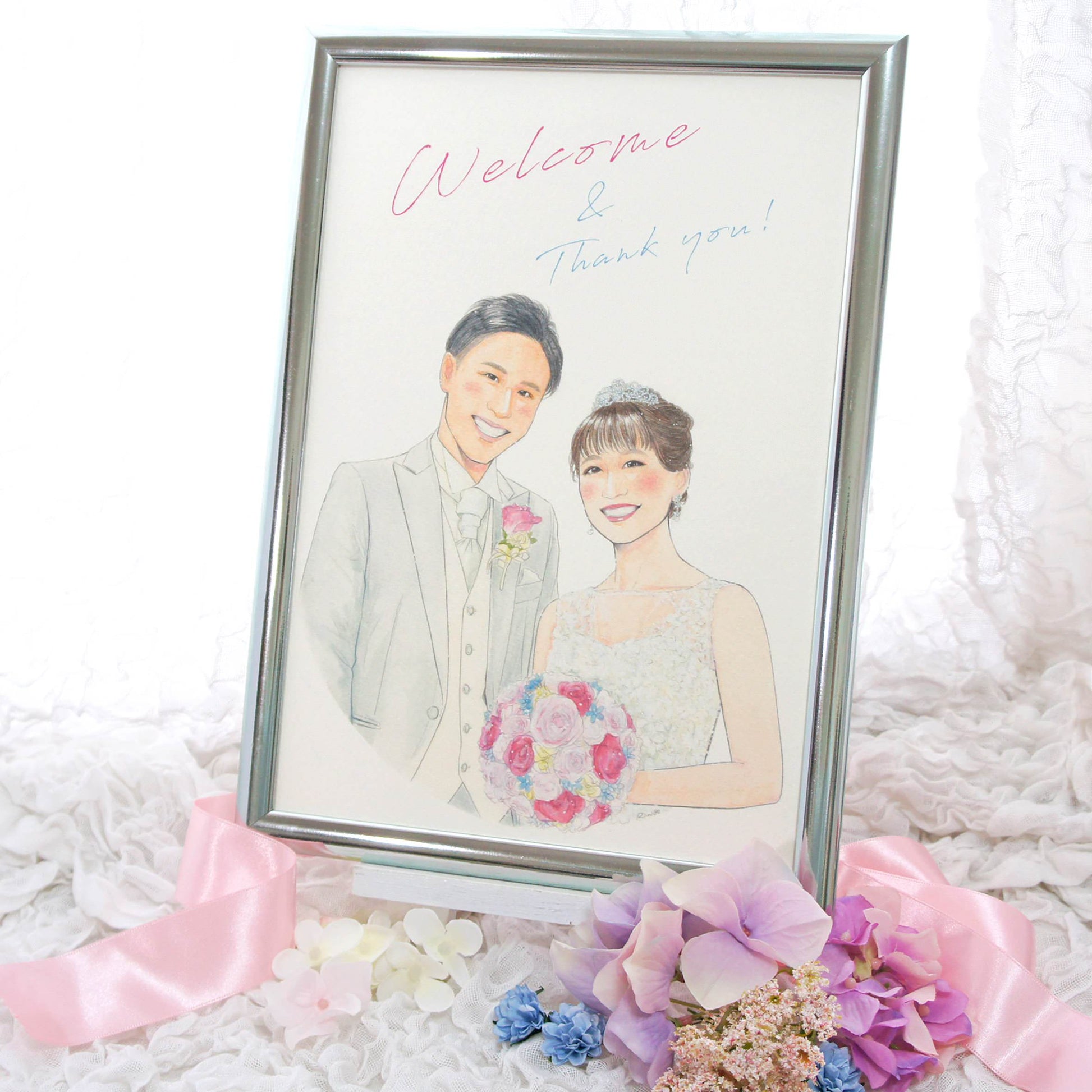 水彩似顔絵ウェルカムボード【A4サイズ・水彩画・フレーム付き】 【結婚式 ウェルカムボード オーダーメイド】