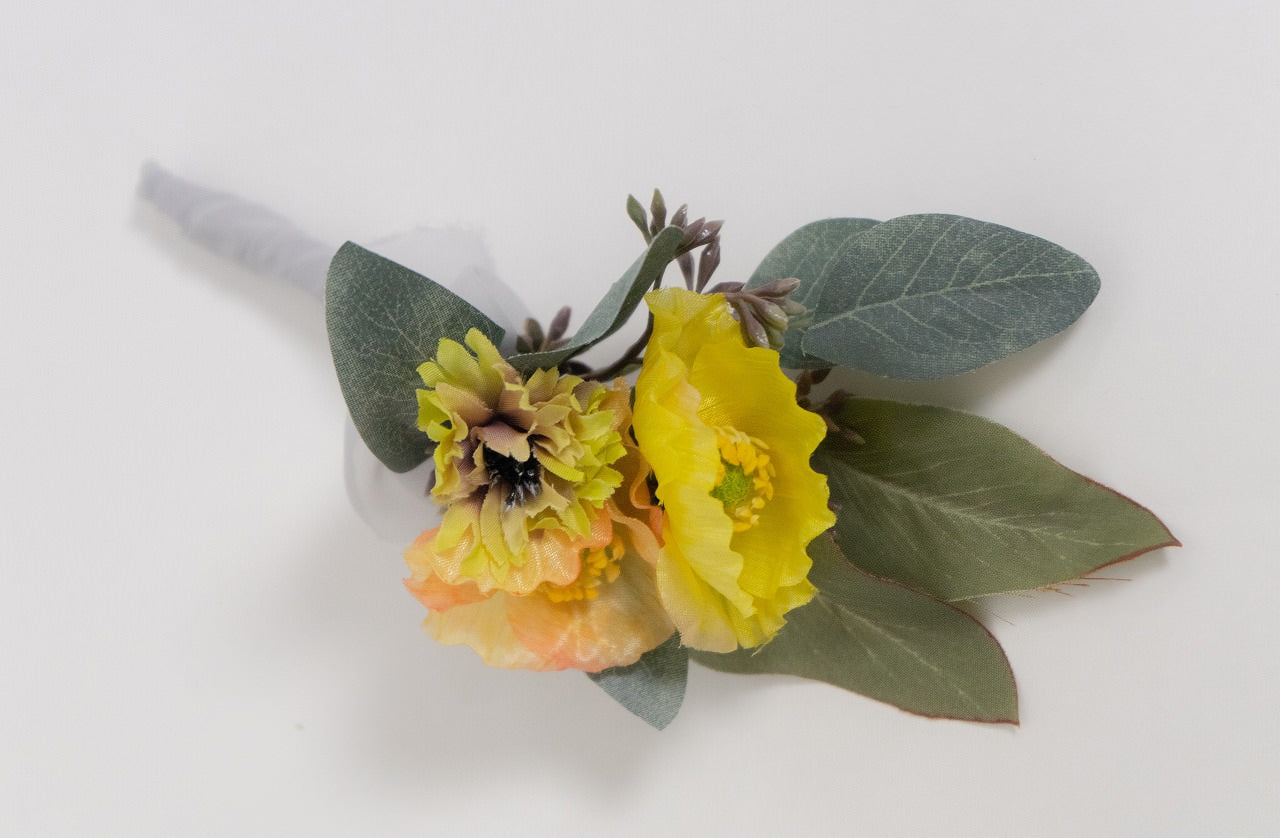 【造花】輝くイエローとグレーの遊び心のあるブーケ 【結婚式 フラワー 造花 ブーケ ブートニア】