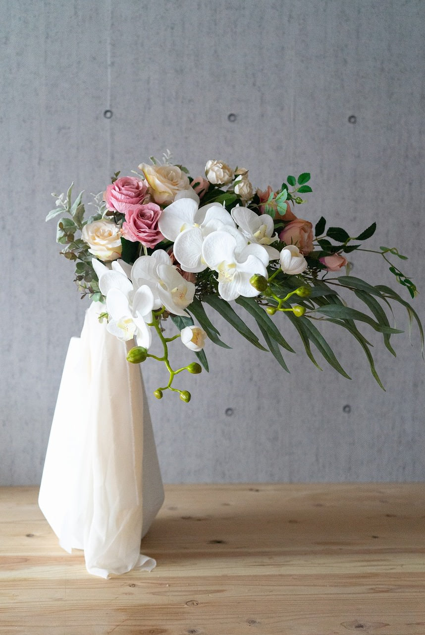 これまで数多くのウェディングを手がけてきたYOUKAENのフラワーデザイナーがあなたのためのアーティフィシャルブーケをお作りします。