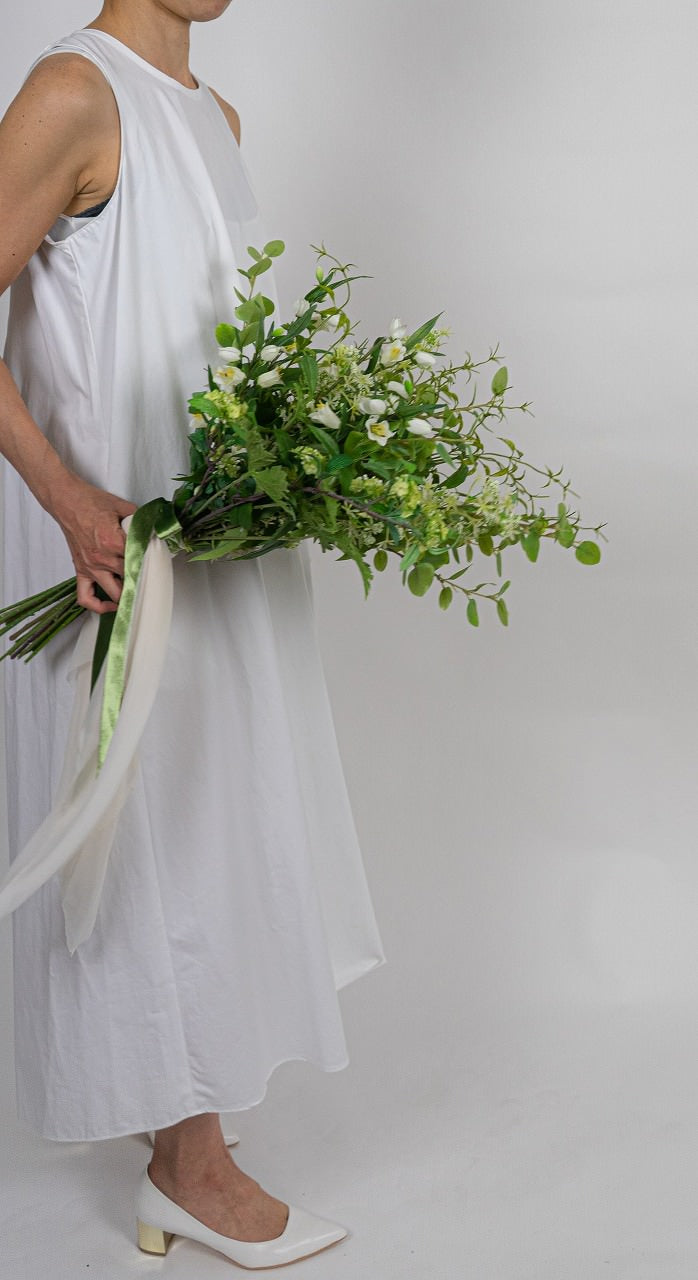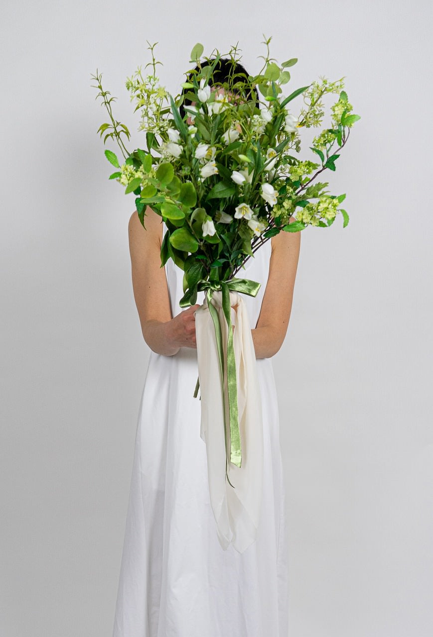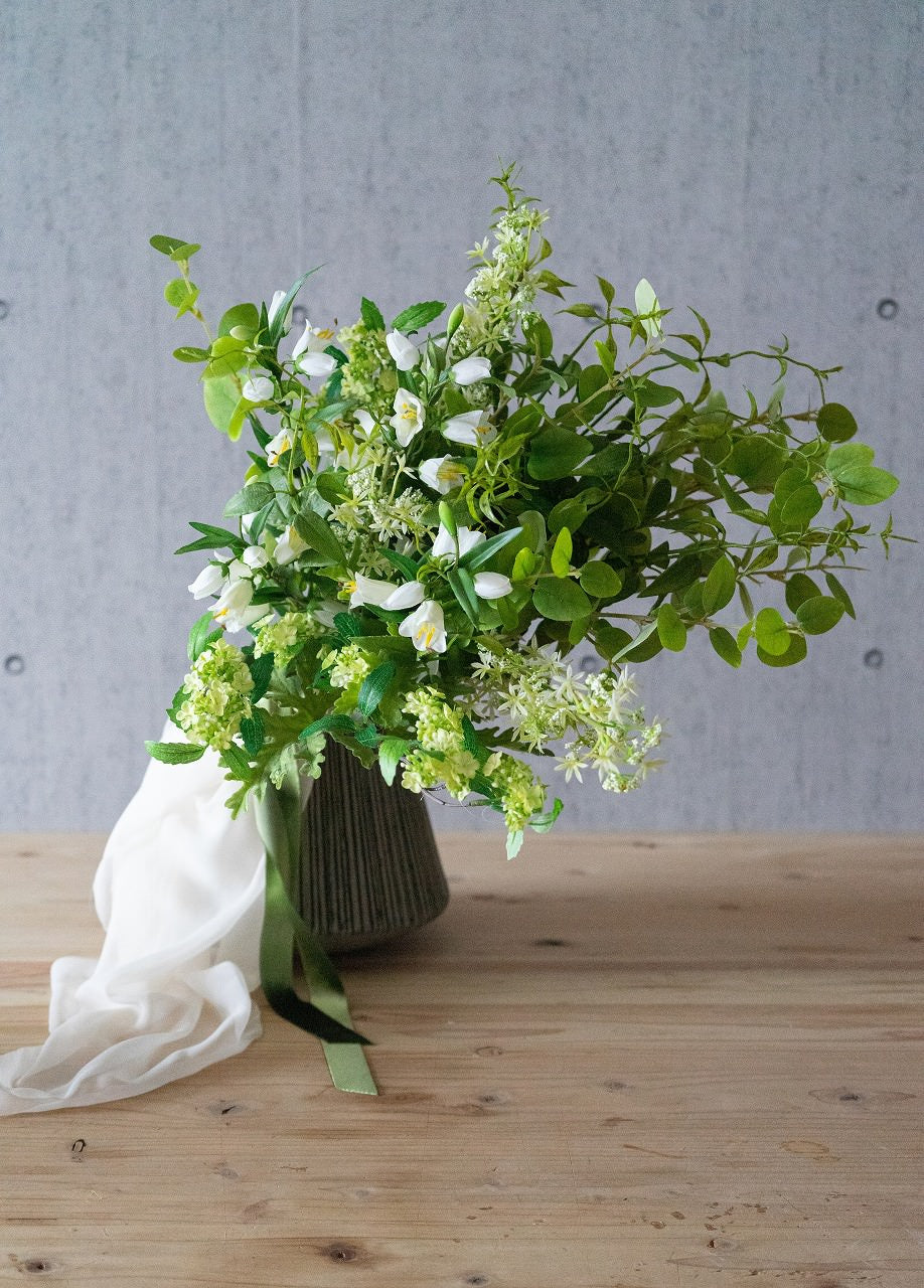 様々なグリーンに小花をちらし、爽やかな清潔感あふれるブーケはカジュアルなレストランウエディングはもちろん、