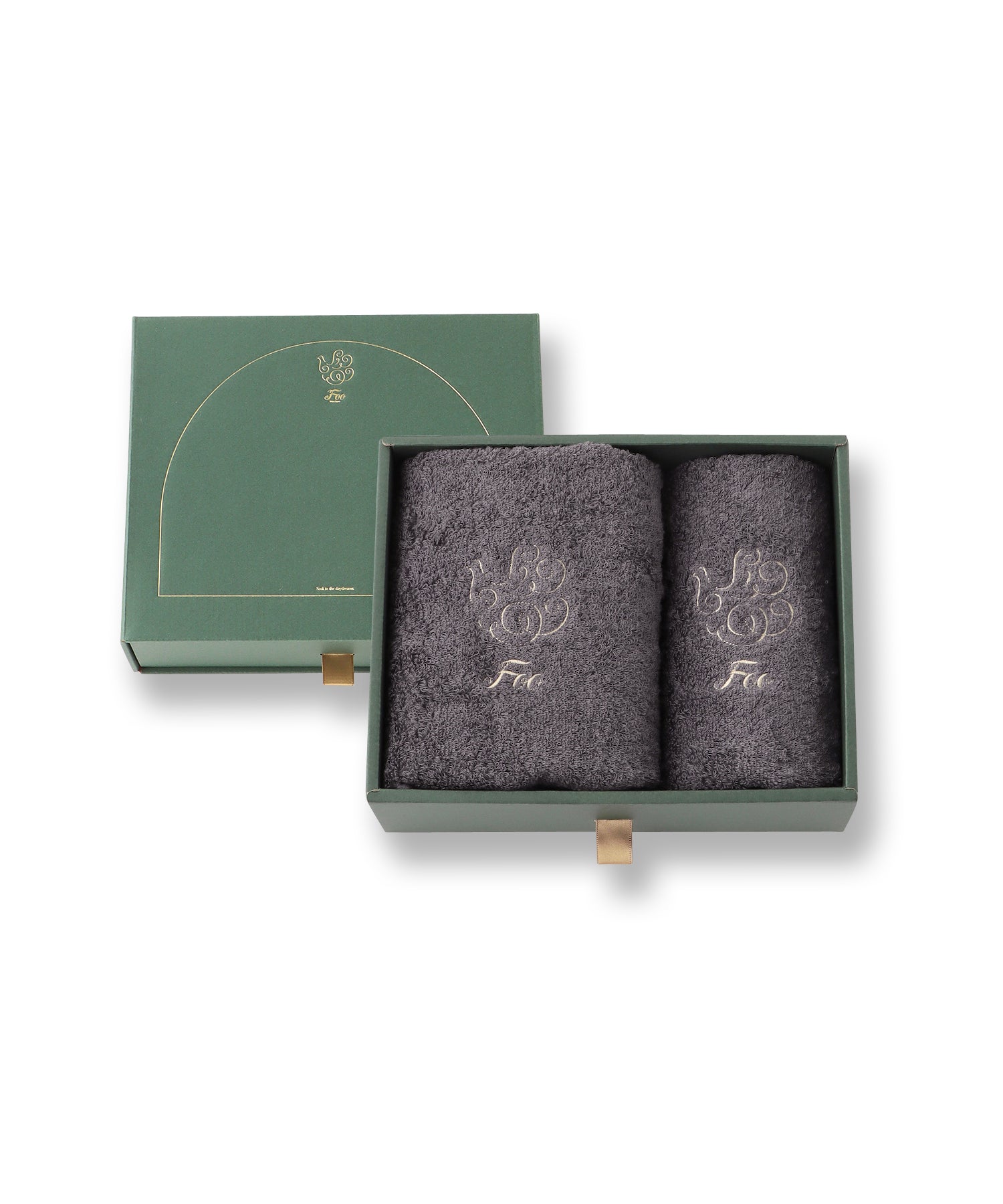 【Foo Tokyo】 オーガニックコットン フェイスタオル1枚 ハンドタオル1枚 ギフトセット チャコールグレー 【結婚式 ギフト 引き出物 タオル 寝具】